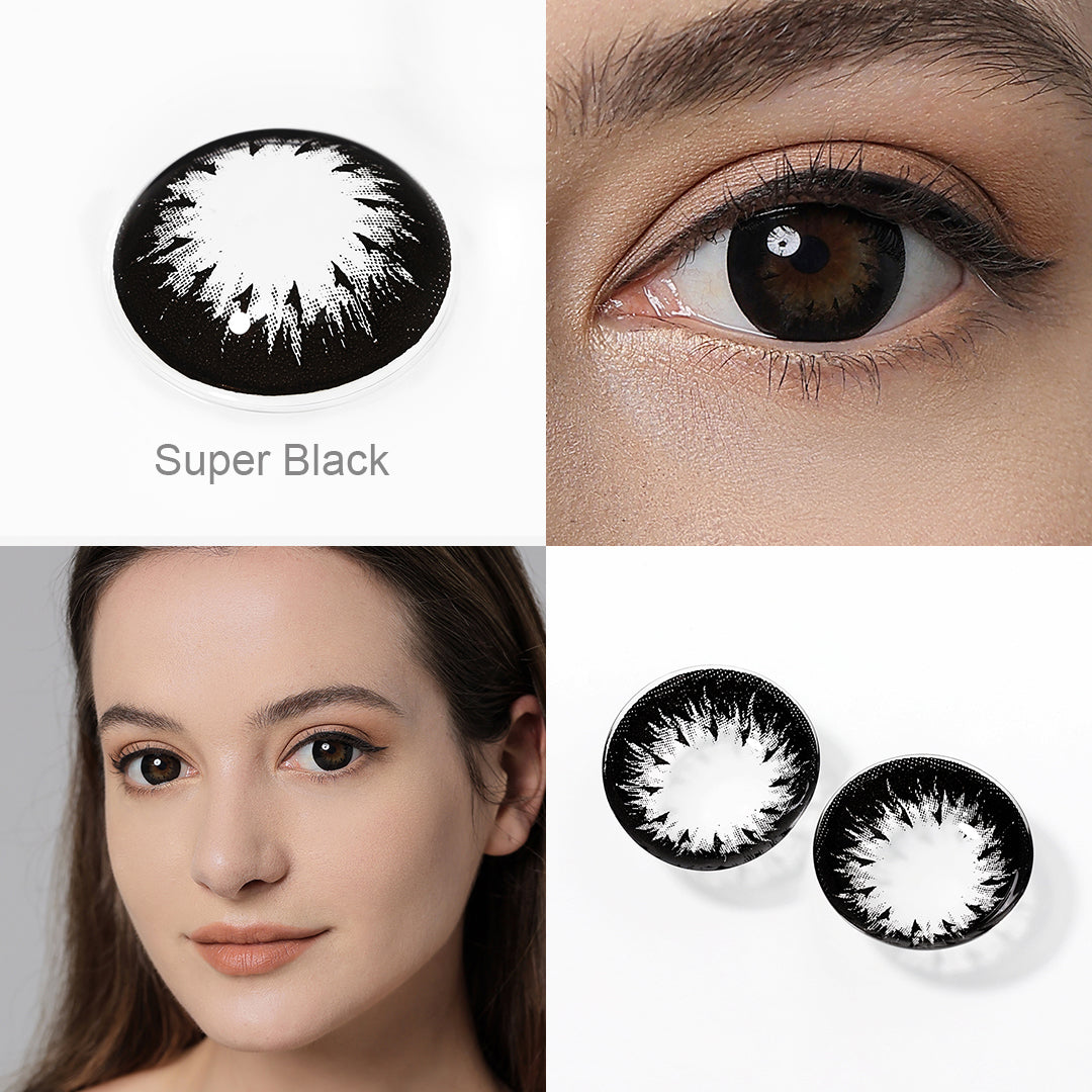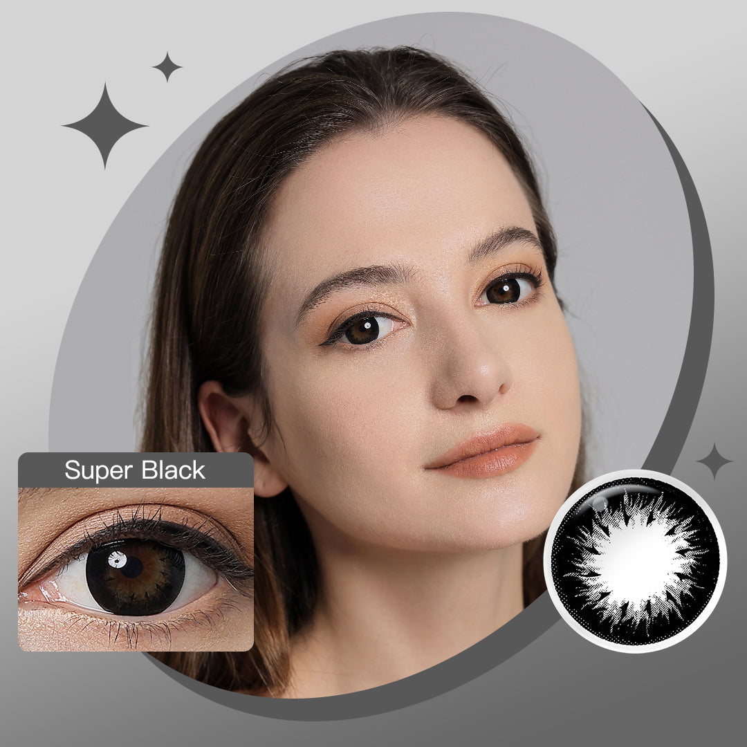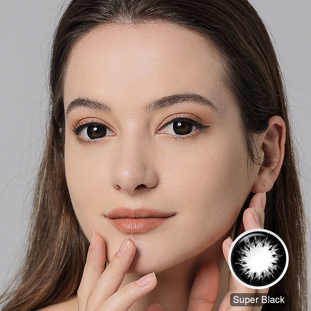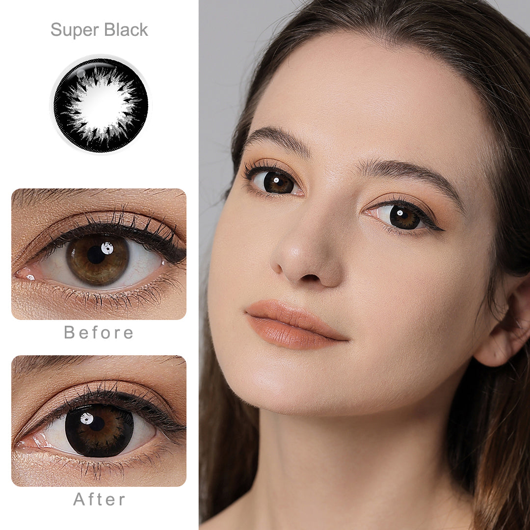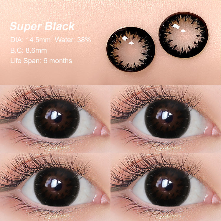The Deep Super Black completely covers the iris and dark rim ring marks, giving your eyes the look of rich, silky chocolate. This color gives contact lenses a sweet look and unique flavor that will stay classic and vibrant. Be the sweetheart of your friends!