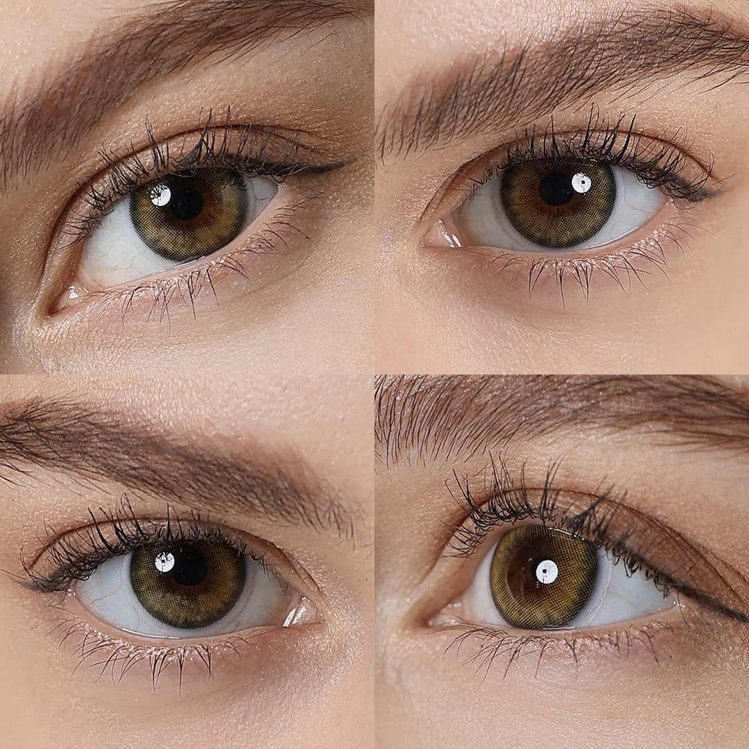 Inspired by the rays of the sun, the Khaki Brown Contacts strongly brighten your dark eyes and add warmth to them.The contacts attract people’s attention by their shiny effect and special pattern, and light brown color keeps your eyes natural. They are the perfect lens for everyday wear.