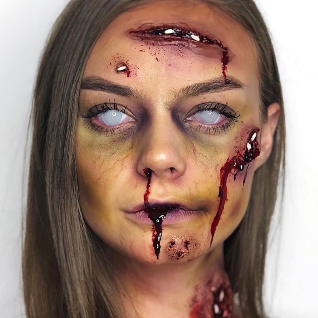 Blind White Sclera Contacts feature a 22mm diameter and will provide a blind covering of your entire eye with just one pair of the lens. These all white contacts are perfect for any whiteout, zombie, or cosplay costume you might be wearing.Β The contacts create a blind whiteout effect, enhancing your zombie or skeleton look. They have been tried and tested by many people and customers, so you will not be disappointed. They are comfortable and can be worn for long periods of time without any discomfort or pain. They are perfect for cosplay, Halloween costumes and everyday fun! These blind white contacts are made of high-quality material, which is very soft and comfortable to wear. They can be worn all day long with no trouble.