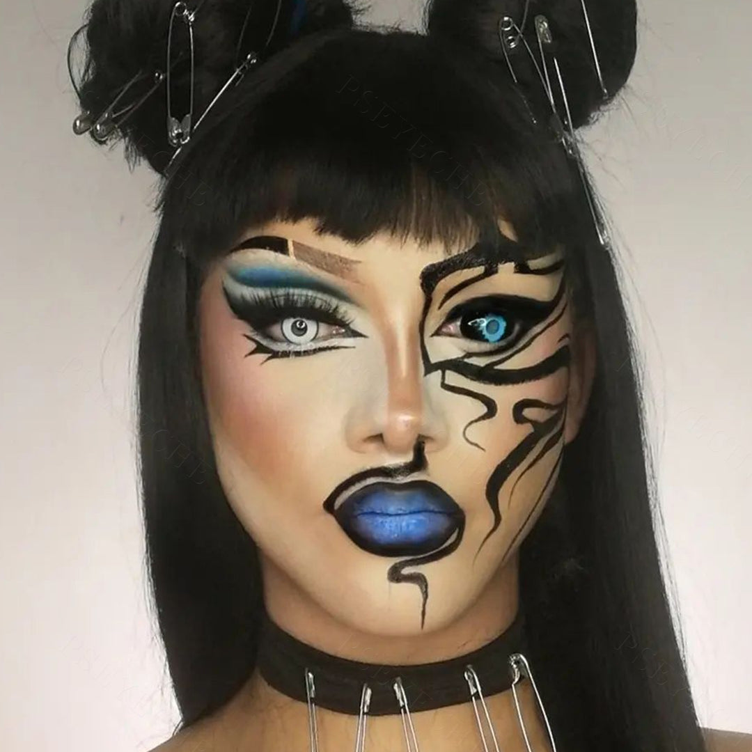 The black horror lenses come with an exploding blue pattern that makes your eyes very shiny. Β Itβs very interesting. The large black background blends completely with your eyes. Fully covering your sclera, these lenses are suitable for some special costumes or cosplay.