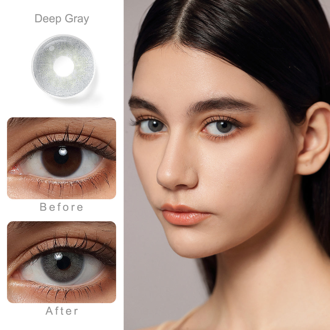 Win hearts and turn heads when you strut down the catwalk in these signature deep gray coloured contacts! Make indelible first impressions with Cloud Deep Gray coloured contact lenses. This colour will help you express a cool, sophisticated personality others have never seen before.