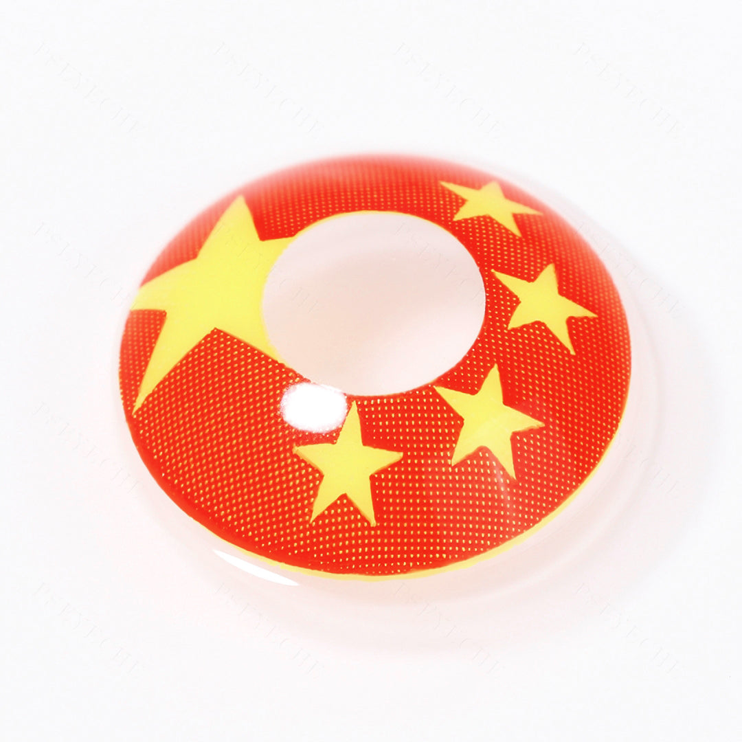 Five-Star contacts have a special design that makes you the focus at parties against a red background. The contacts are designed in the Five-Starred Red Flag pattern, which is suitable for some commemorative occasions or many holidays. Come order a special pair of contacts.