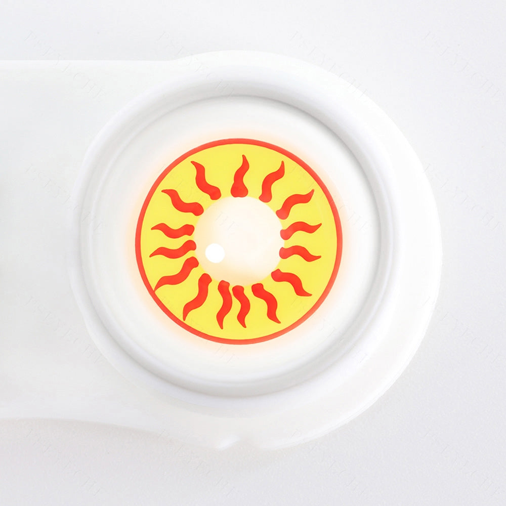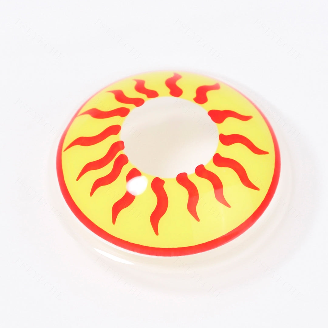 - Pumpkin orange undertone, blends with the golden yellow solar ring. This vivid design looks like a simplified tribal totem of the old Aztecs culture. Vibrant orange and yellow, pop out easily, making you the center of attention. You could use them to play the werewolf or other similar characters.