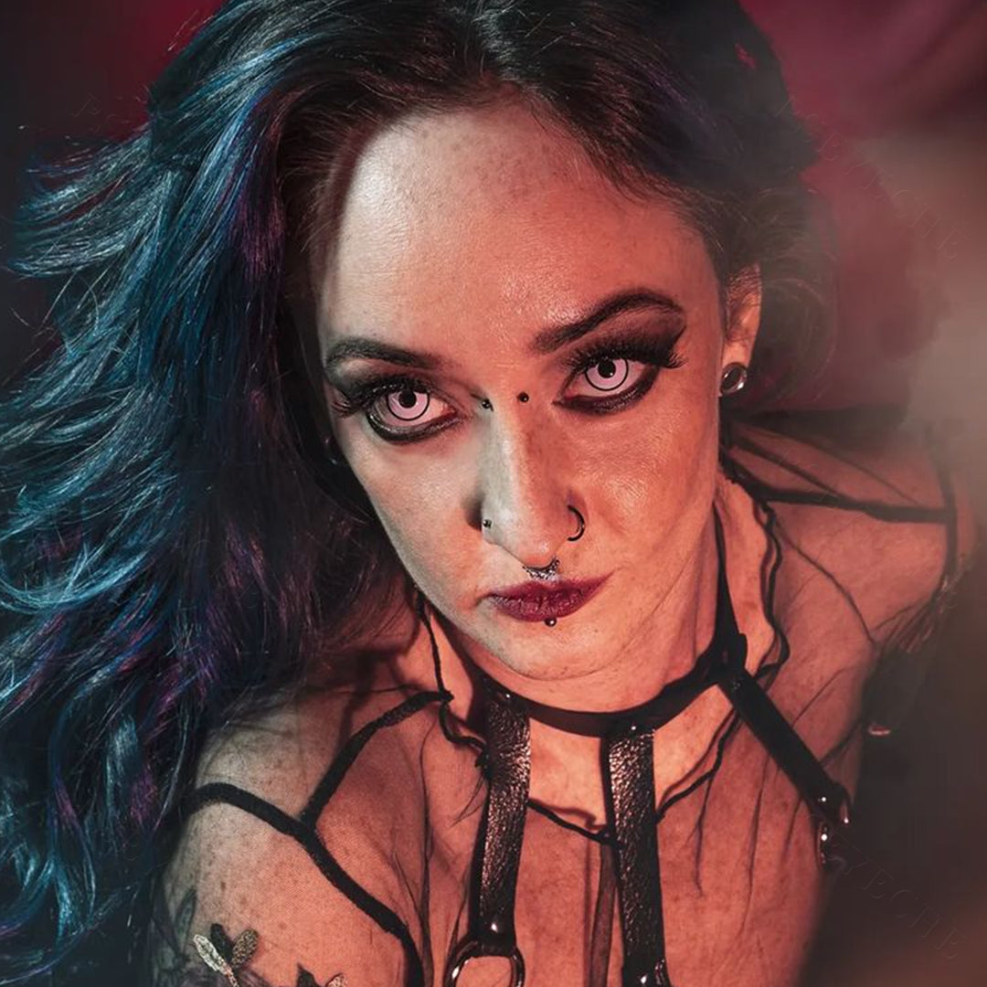 Creat a big visual impact and make cool & scary look with white manson contacts. White color and a classic black outer ring are perfect choice for crazy Halloween costume. Come on and transform it!