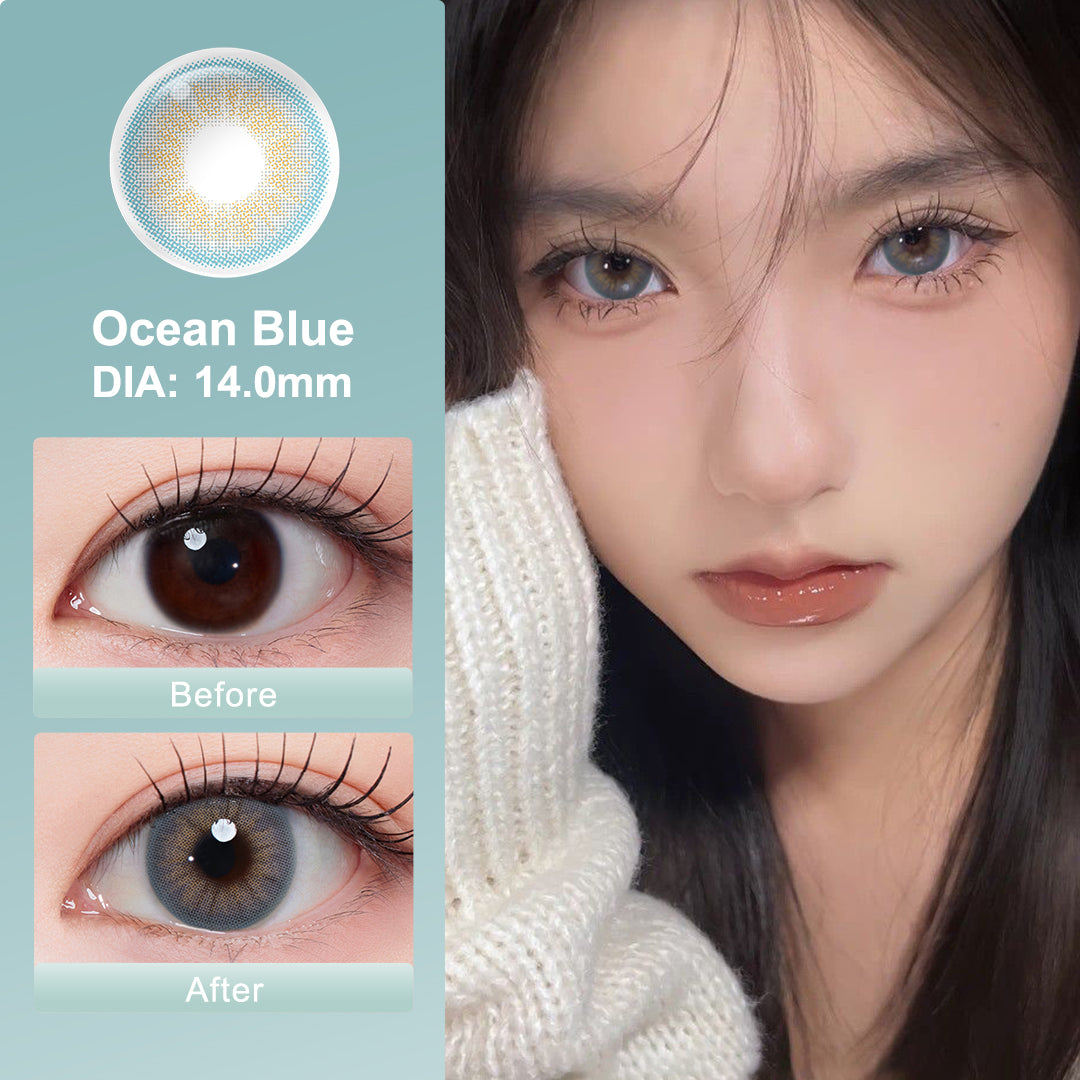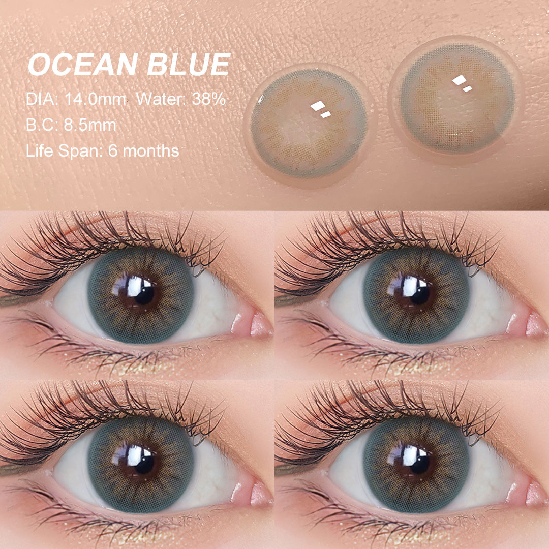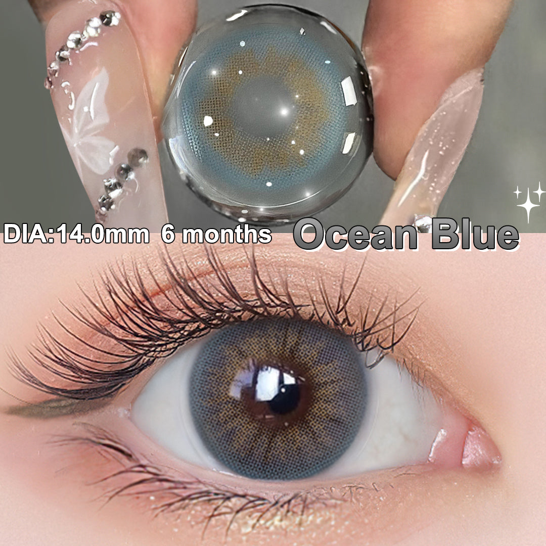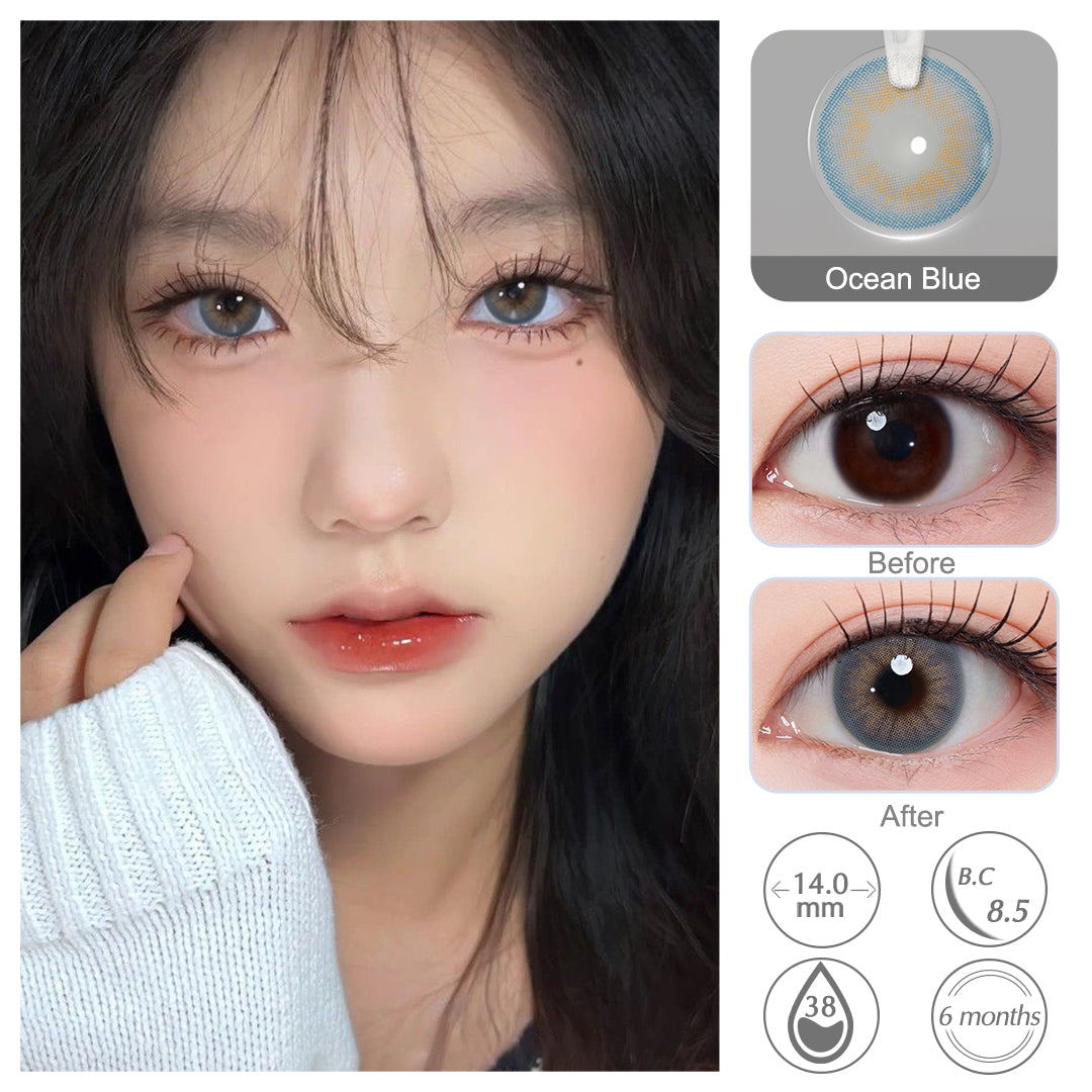 The Desire Ocean Blue blends perfectly with the stunning yellow pattern in the middle of the lens, giving your eyes the natural translucency of an iceberg. The stunning yellowish pattern fine workmanship pattern with different colors of contact lenses produces a surprising effect.