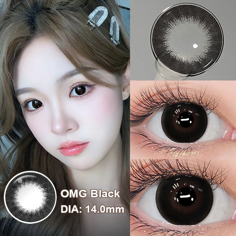 The OMG Black blends perfectly with the stunning yellow pattern in the middle of the lens, giving your eyes the natural translucency of an iceberg. The stunning yellowish pattern fine workmanship pattern with different colors of contact lenses produces a surprising effect.