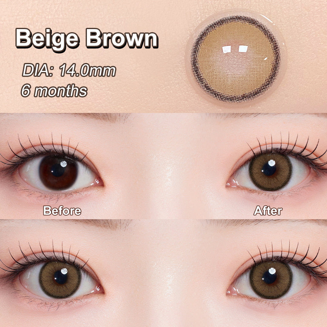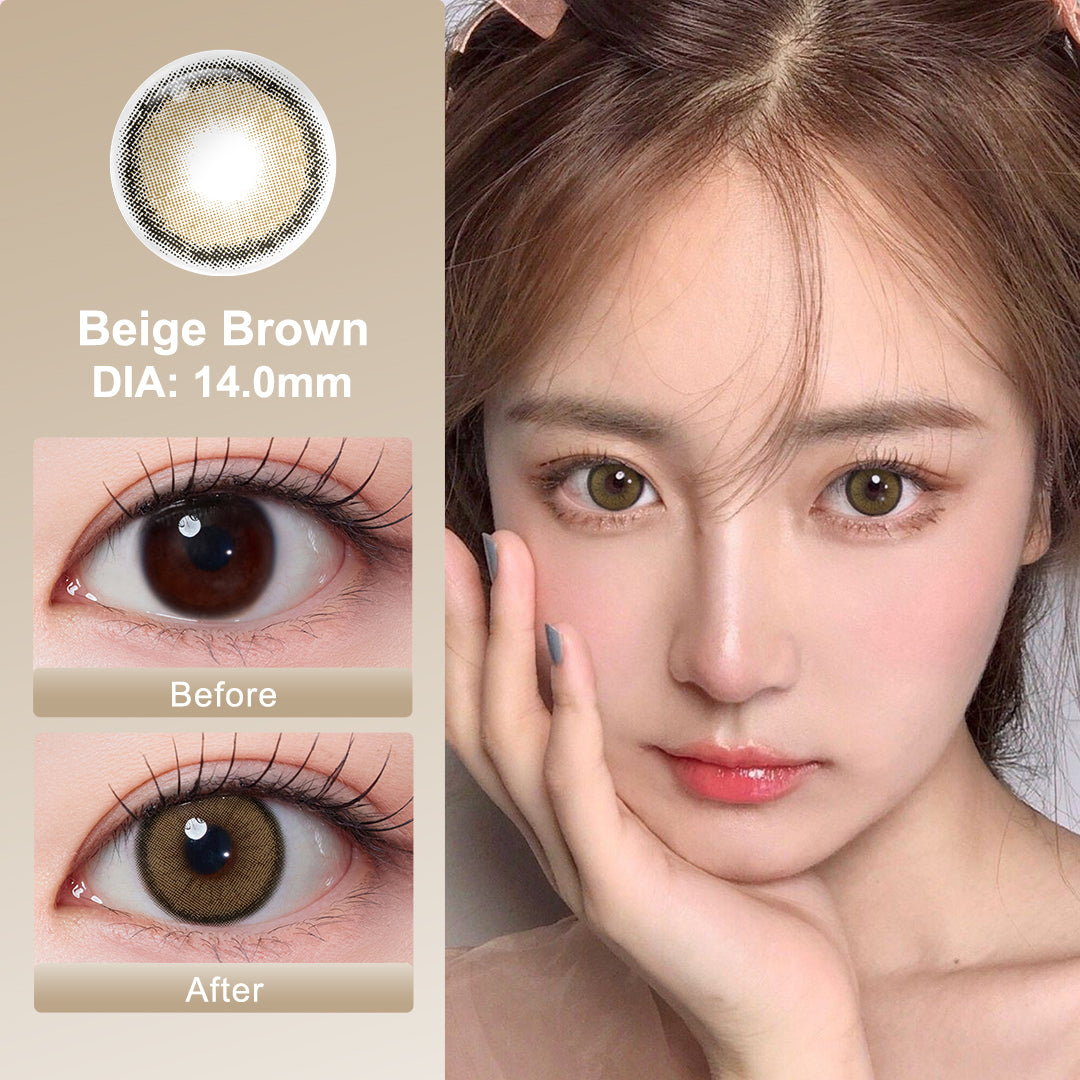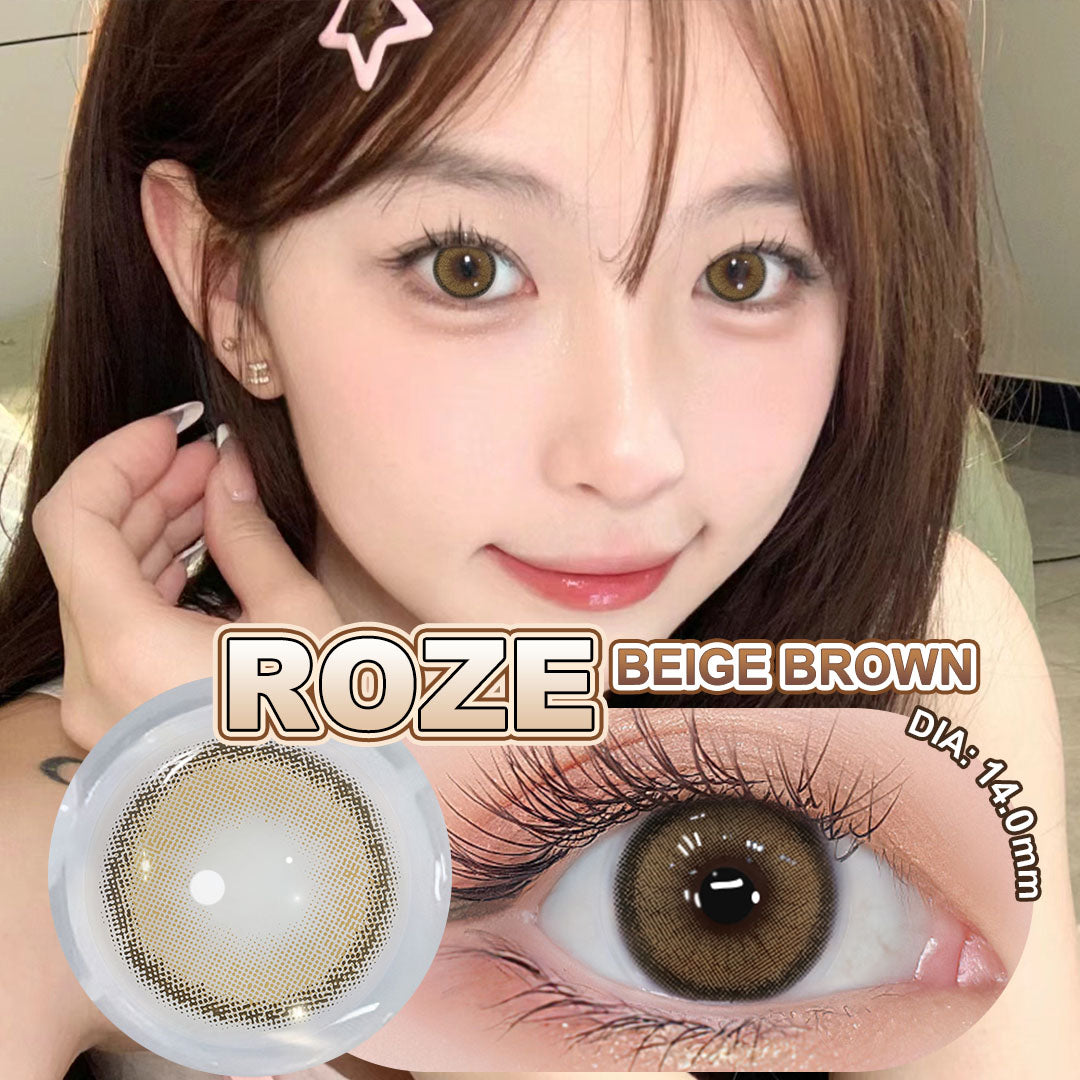 Roze Beige Brown design features a one-tone shade with no limbal ring, creating the most realistic eye color that we all crave. Its Roze Beige Brown tint in the center of the lens gives subtle blending as well as ensures the color stays natural even when people look at them at a closer distance.
