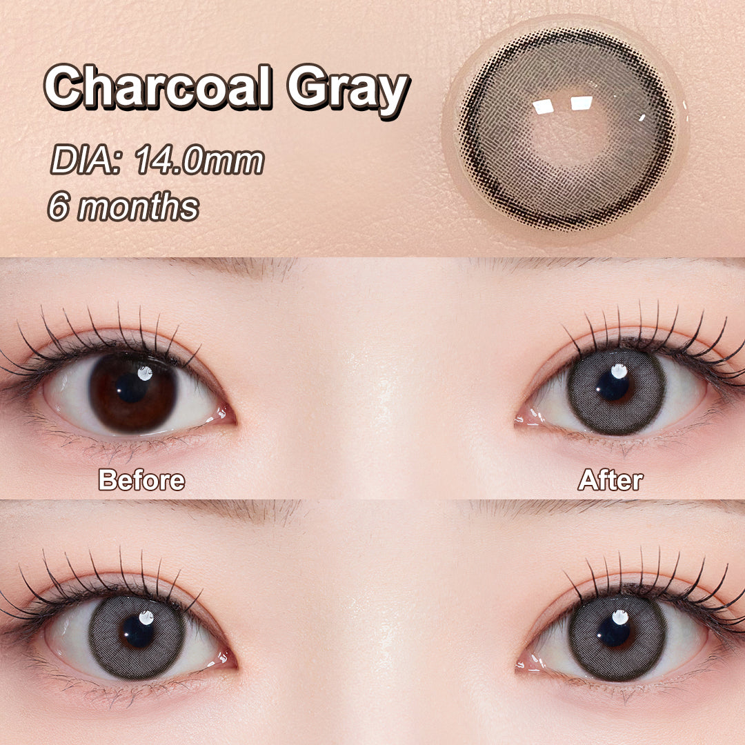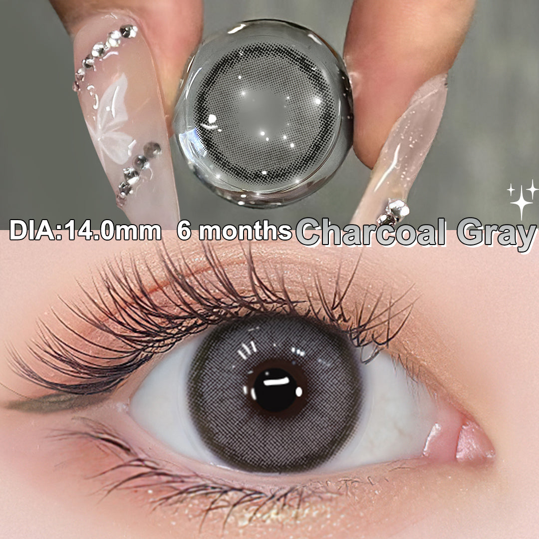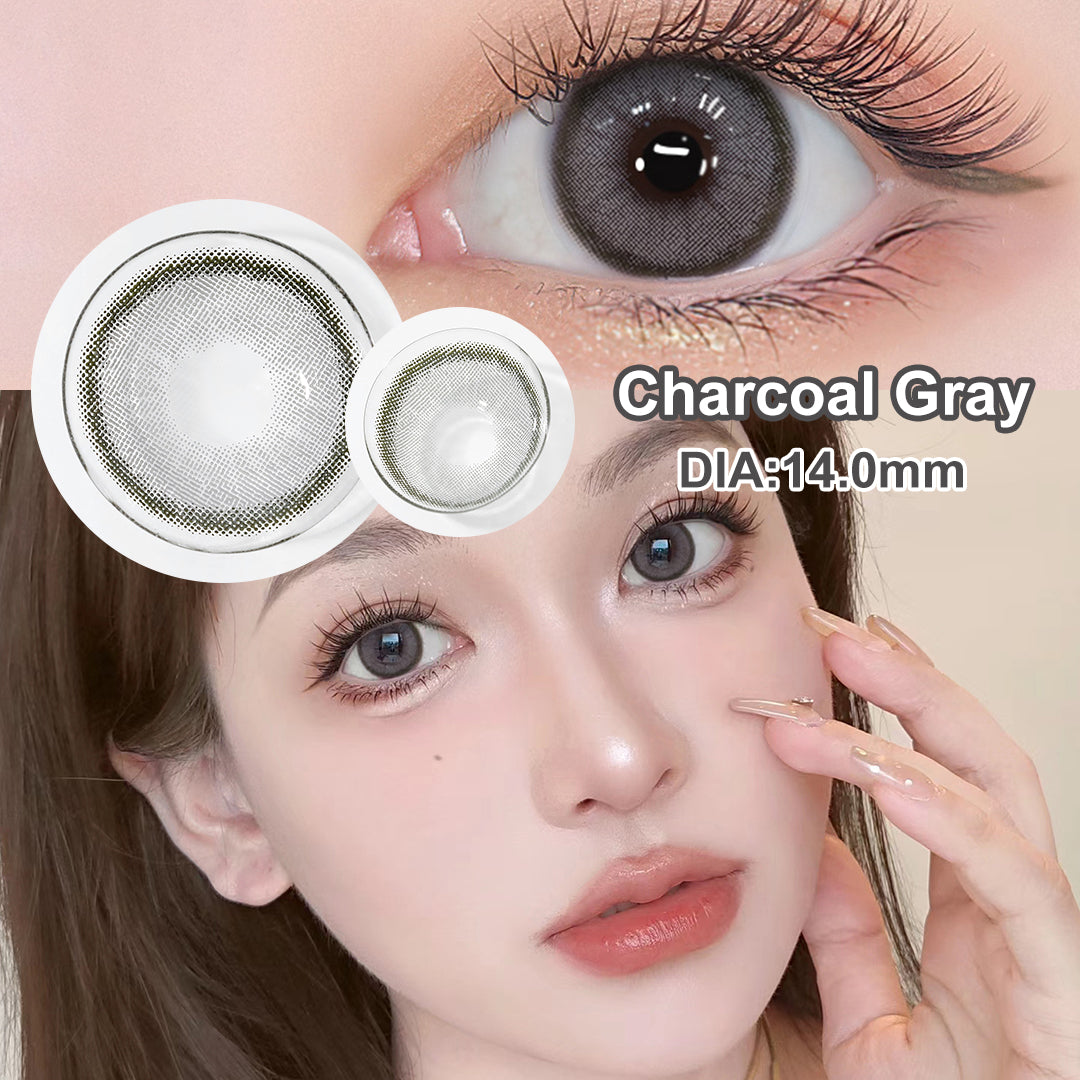 Roze Charcoal Gray lenses offer a deep, one-tone gray shade with no limbal ring, providing a sophisticated and natural look. The soft charcoal tint blends seamlessly with your natural eye color for a subtle yet striking transformation, perfect for a refined, everyday style.