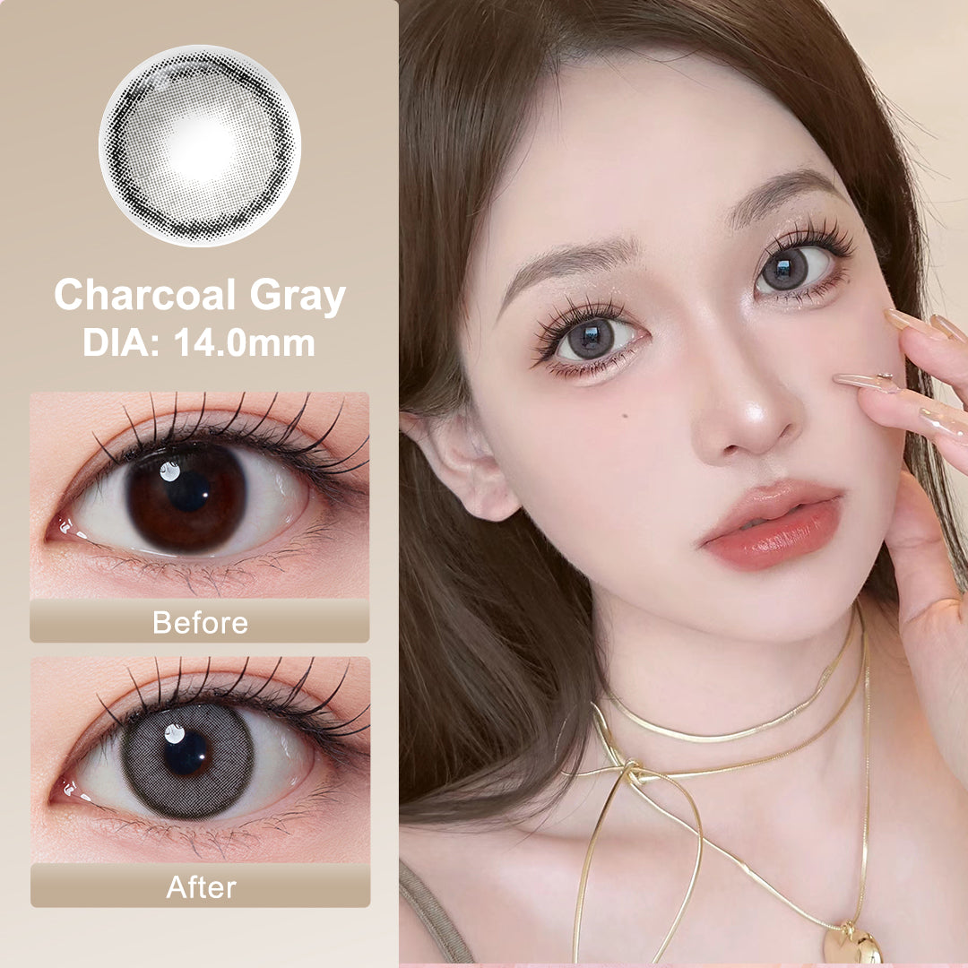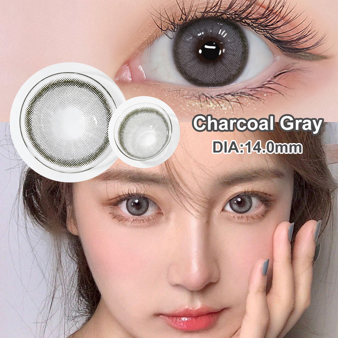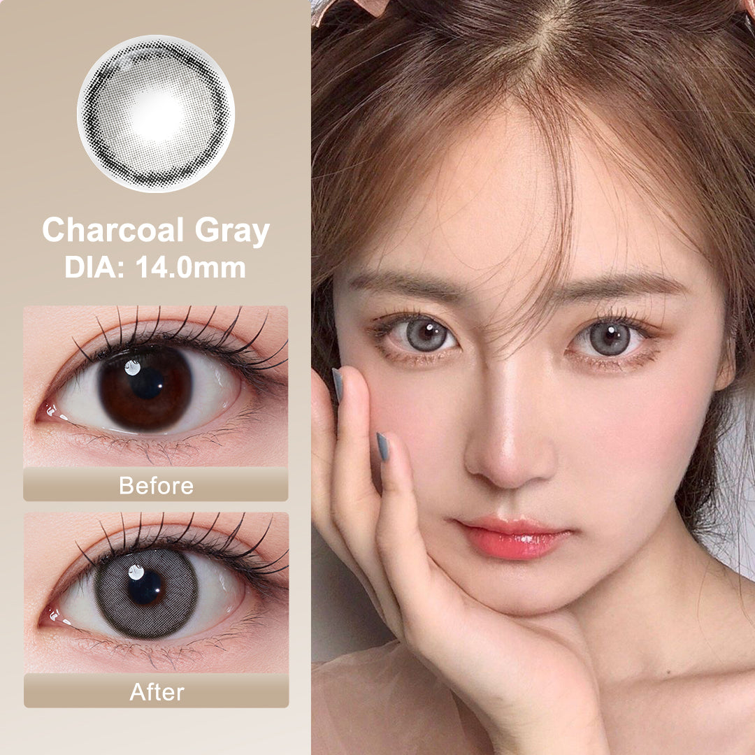 Roze Charcoal Gray lenses offer a deep, one-tone gray shade with no limbal ring, providing a sophisticated and natural look. The soft charcoal tint blends seamlessly with your natural eye color for a subtle yet striking transformation, perfect for a refined, everyday style.