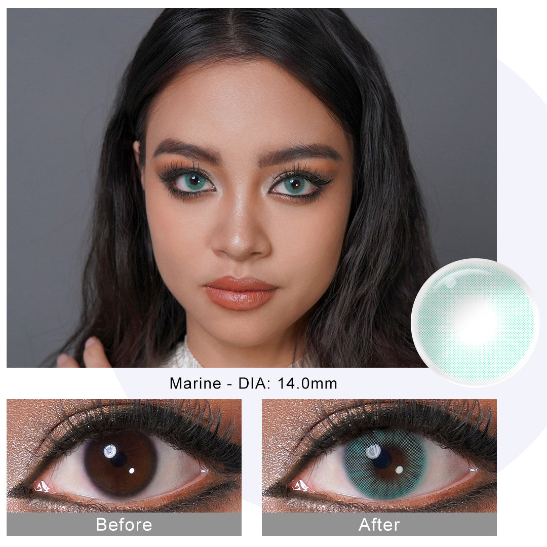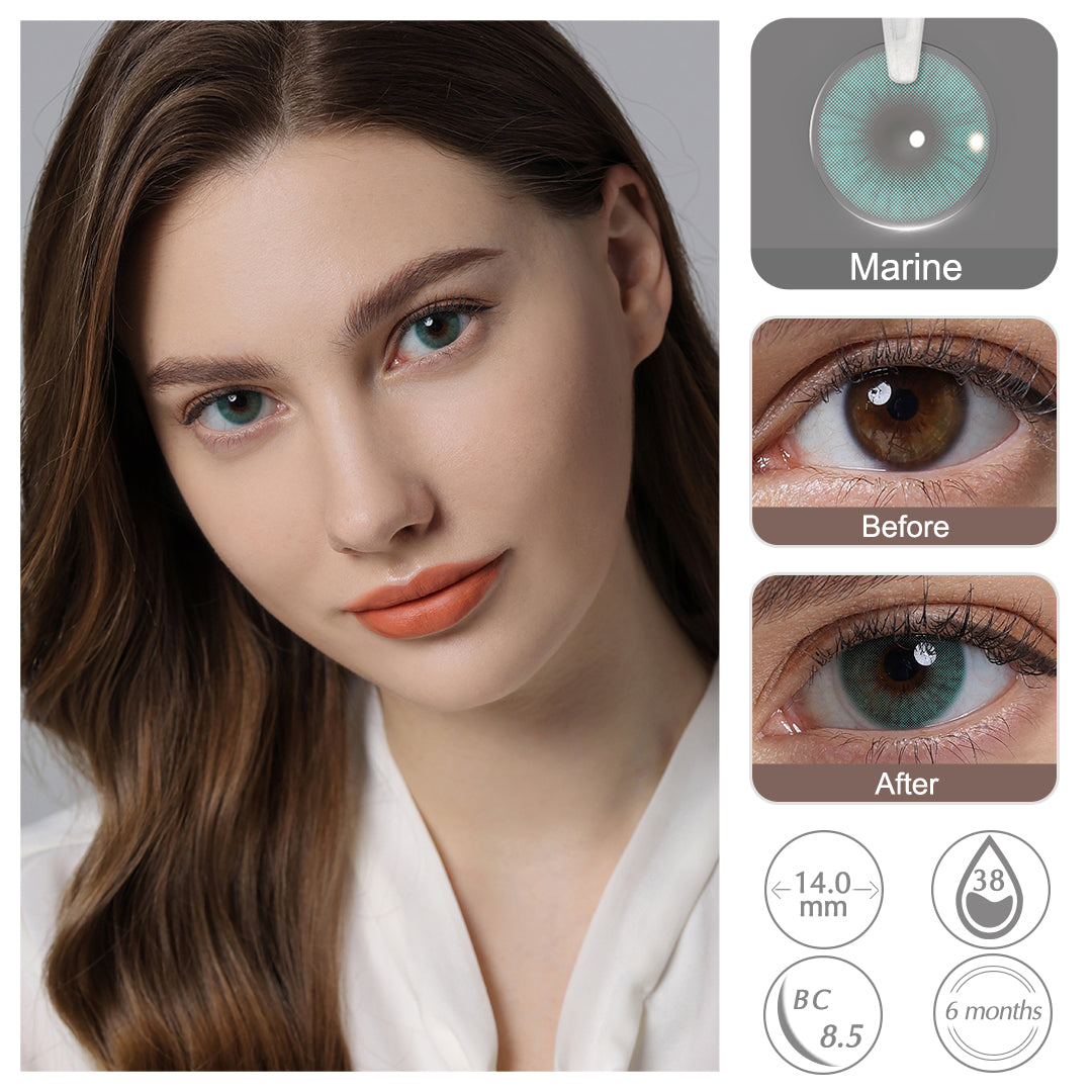 Dive into the depths of elegance with Queen Marine Eyes, a lens designed to captivate with its natural beauty and ocean-inspired allure. These lenses seamlessly enhance your eye color for a soft, yet striking effect. The Marine Blue tint at the center creates a delicate and alluring blend that mirrors the gentle flow of the sea, offering a realistic and captivating hue that mesmerizes from every angle.