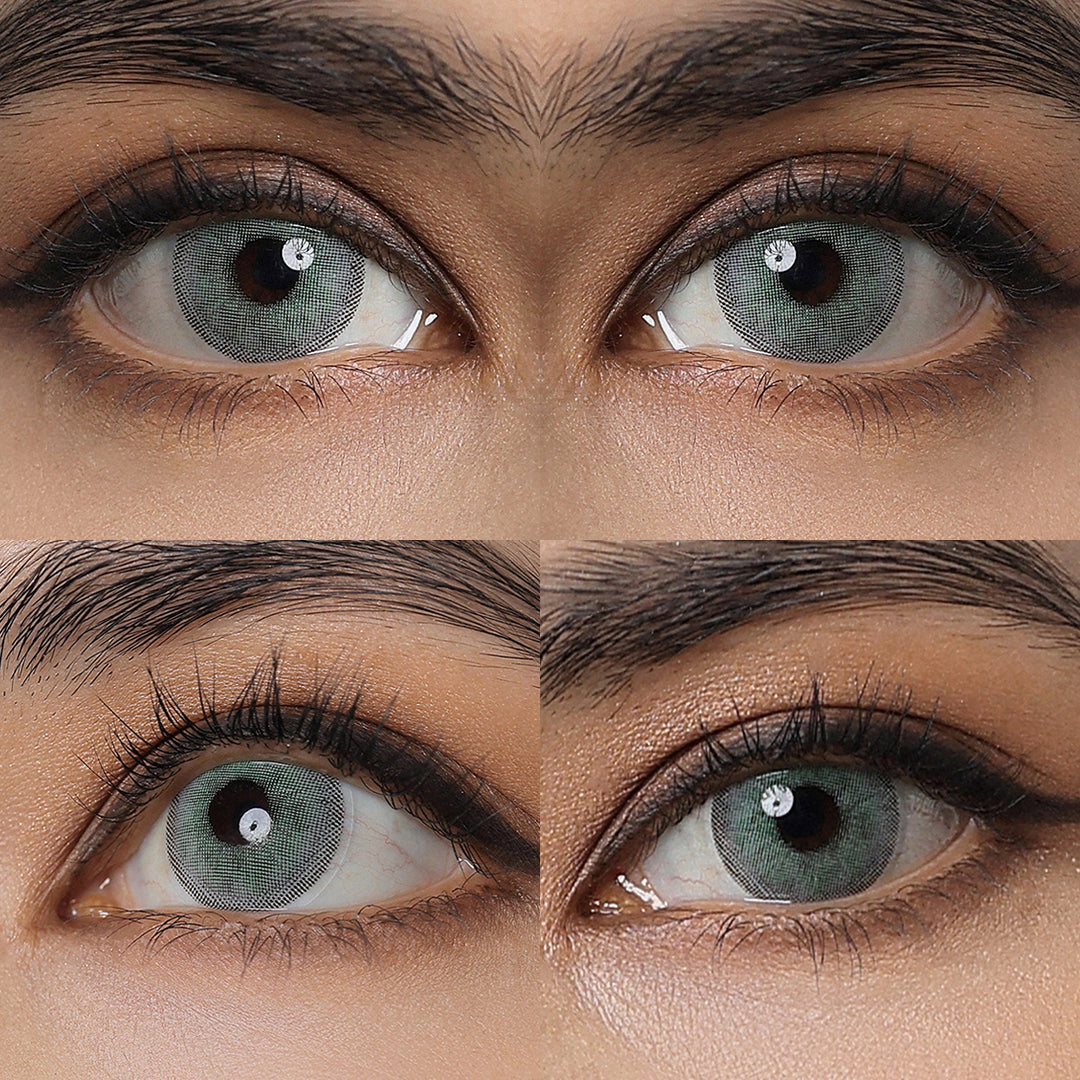 With an intense black ring outside, our Sono Green coloured contacts redefine your iris and makes your eyes look bigger. The primary color is a fresh green, which can create an eye-catching look on your eyes.