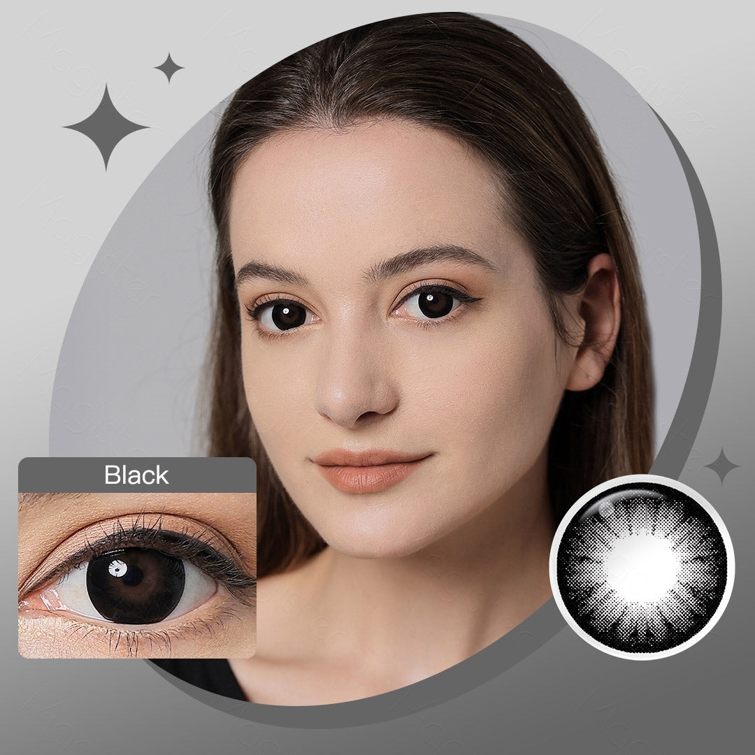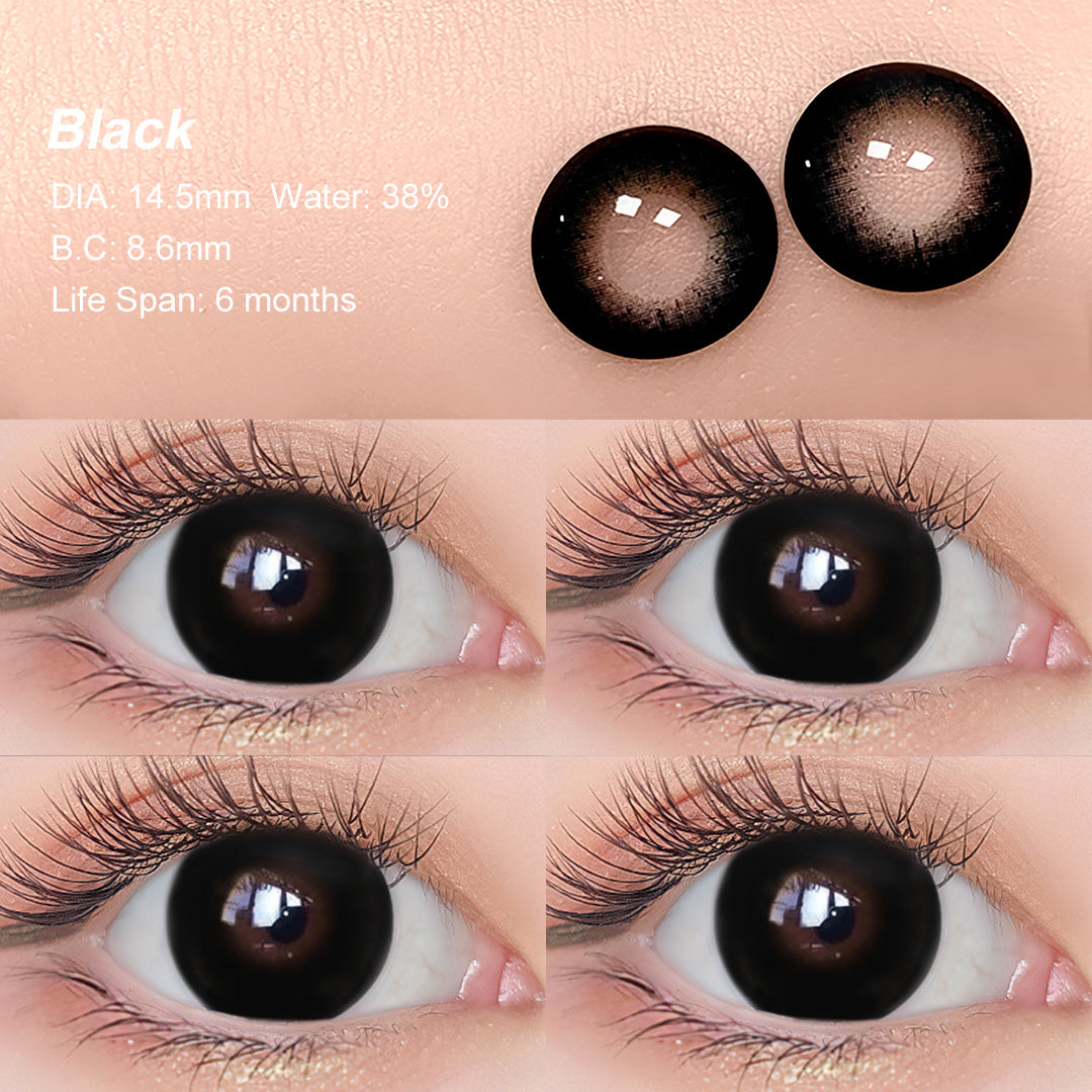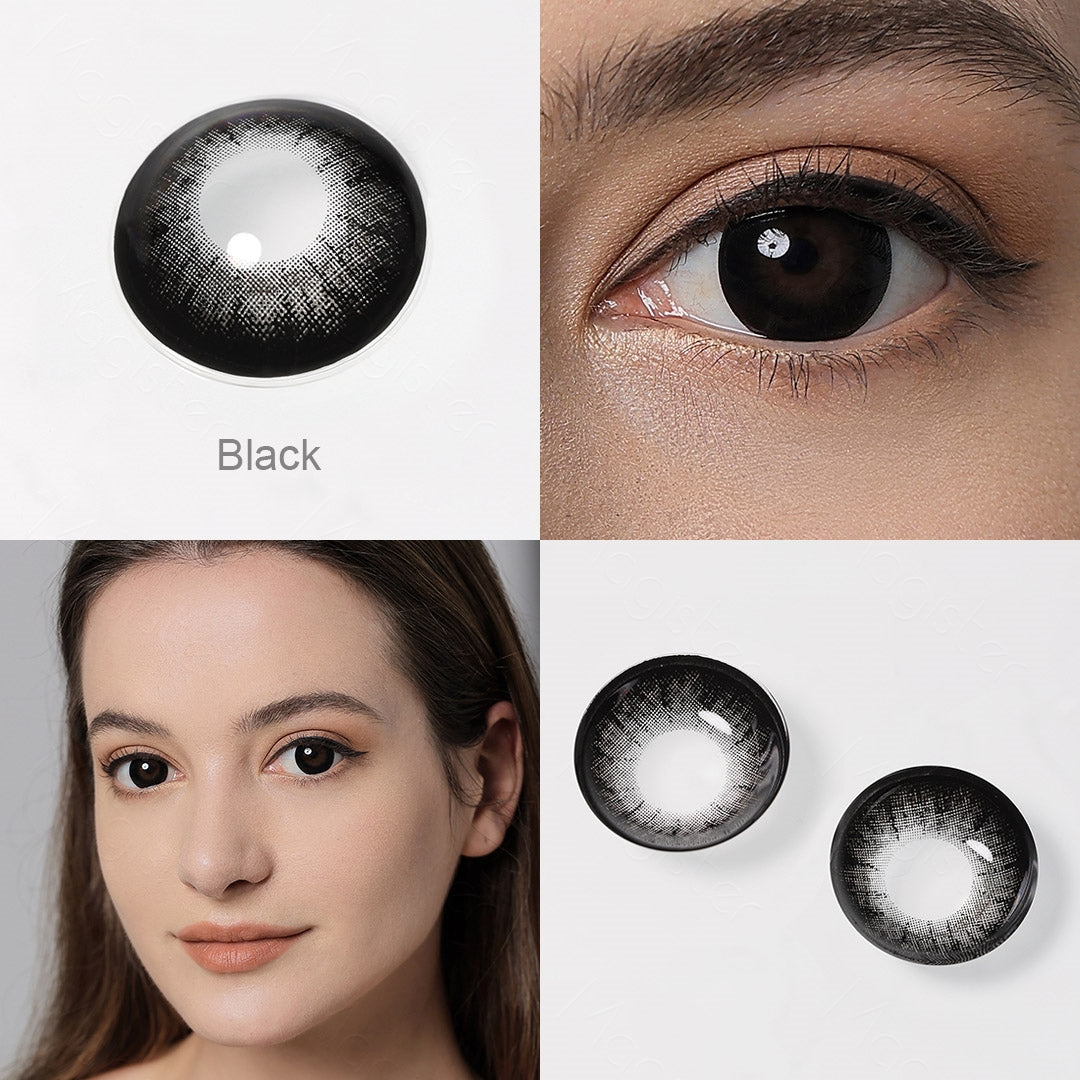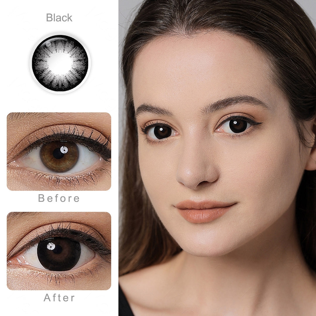 The Deep Black contact lenses completely cover the iris and dark rim ring marks, giving your eyes the look of rich, silky chocolate. This color gives contact lenses a sweet look and unique flavor that will stay classic and vibrant. Be the sweetheart of your friends!