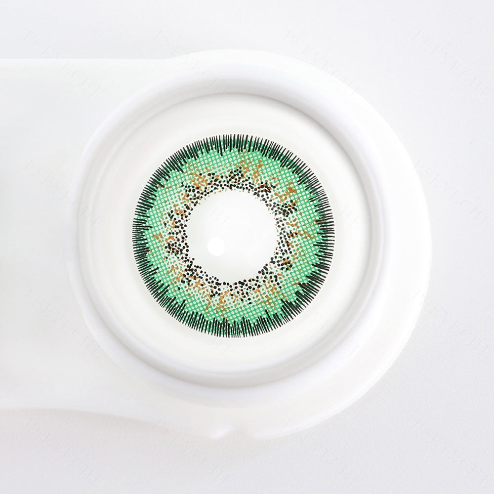 Invitate you to Listenig to the green forest story ---- envy green Halloween contacts. Gorgeous green lenses feature a special dotted design with hints of brown and black to make the green color stand out more. Can't wait for share this sunshine look to you at Halloween costume party.