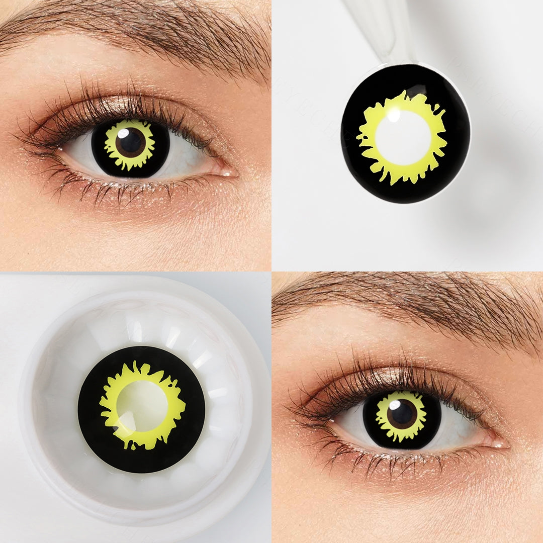 With a yellow iris and black background, our Black And Yellow Eclipse Contact Lenses are a great addition to your next Halloween costume.day.