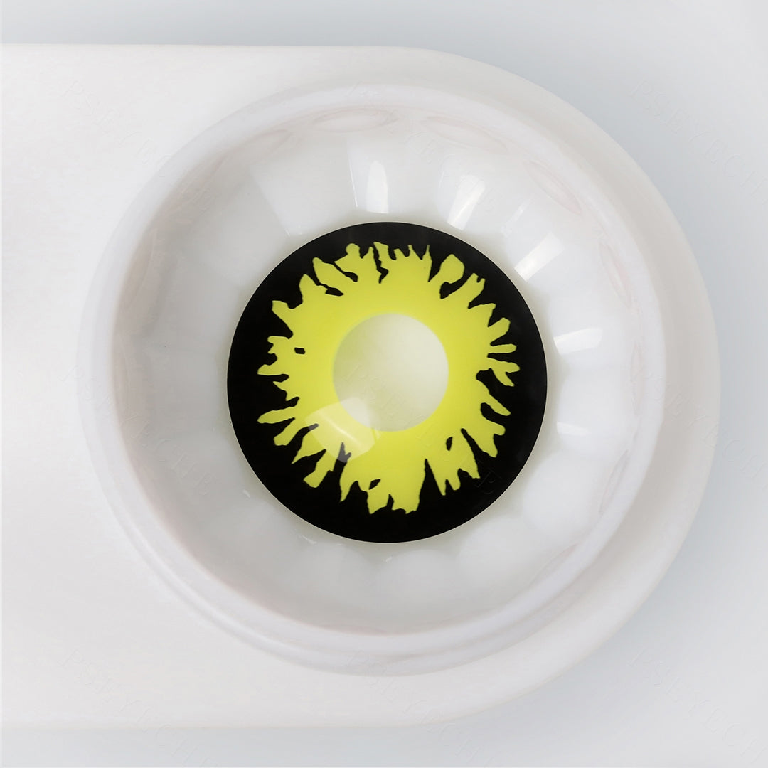 Black And Yellow Wolf Contacts feature a yellow iris on a black background that makes you look like a real wolf.