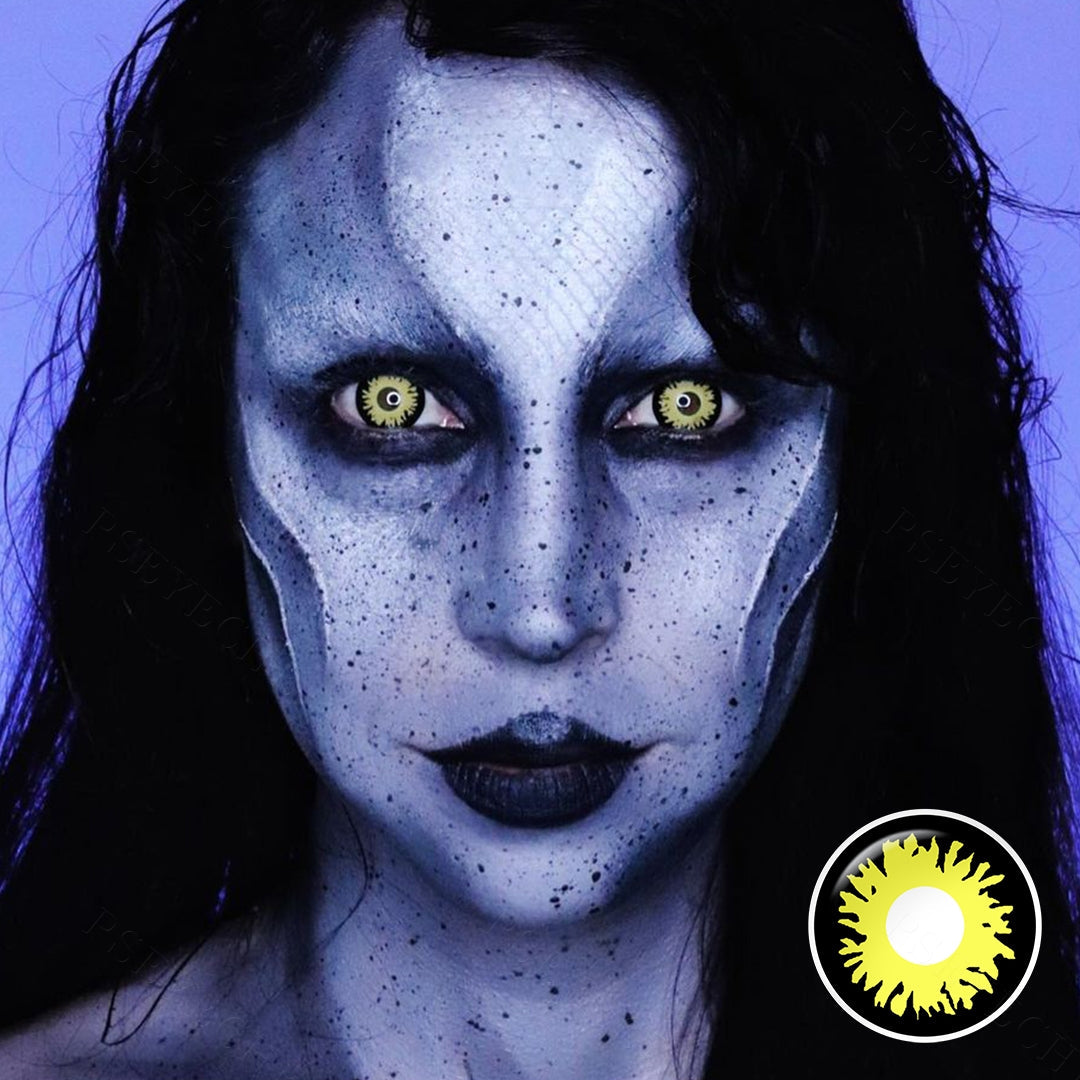 This pair of werewolf eye contacts are perfect for you if you want to be a werewolf or other mythical creature. These contacts are yellow with a black background and have your iris as the pupil. Give yourself an animalistic look to really bring out the beast in you!