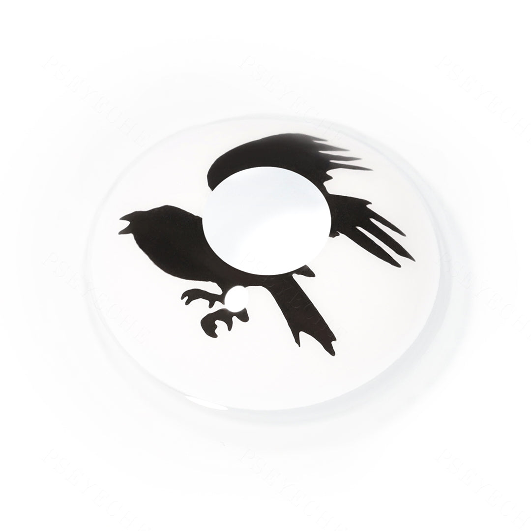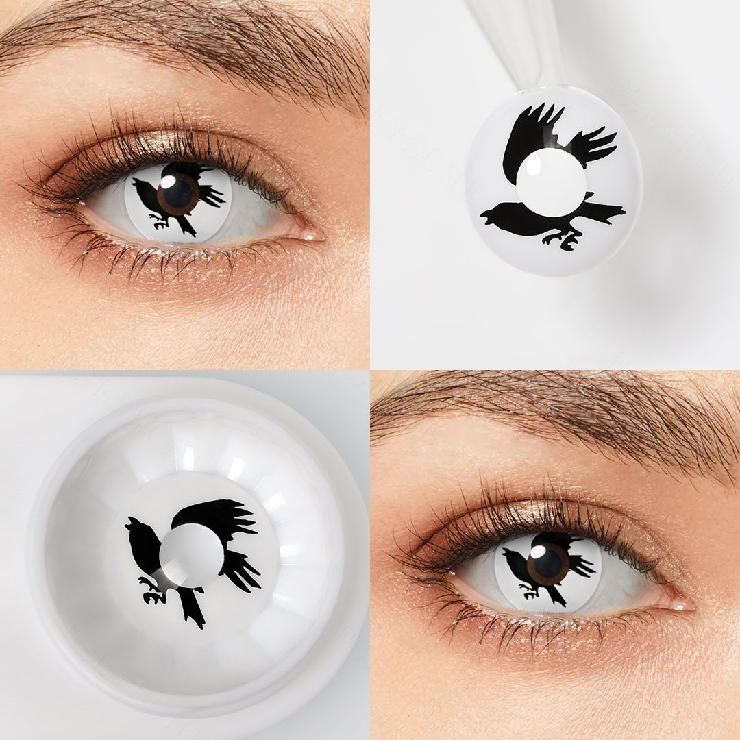 Eagle Halloween Contact Lenses design with an eagle flying on white background. Eagle is a large bird of prey with a massive hooked bill and long broad wings, renowned for its keen sight and powerful soaring flight. They represent honesty, truth, majesty, strength, courage, wisdom, power and freedom. As they roam the sky, they are believed to have a special connection to God. So you can wear eagle contact lenses to show your free side.