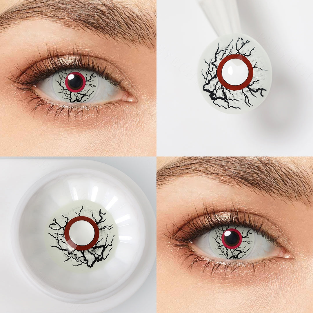 The black spreading veins streaks around the pupil seem like bleeding. Everyone will be creepy when you show up wearing this Freaky Lens as a horror figure of a zombie party.
