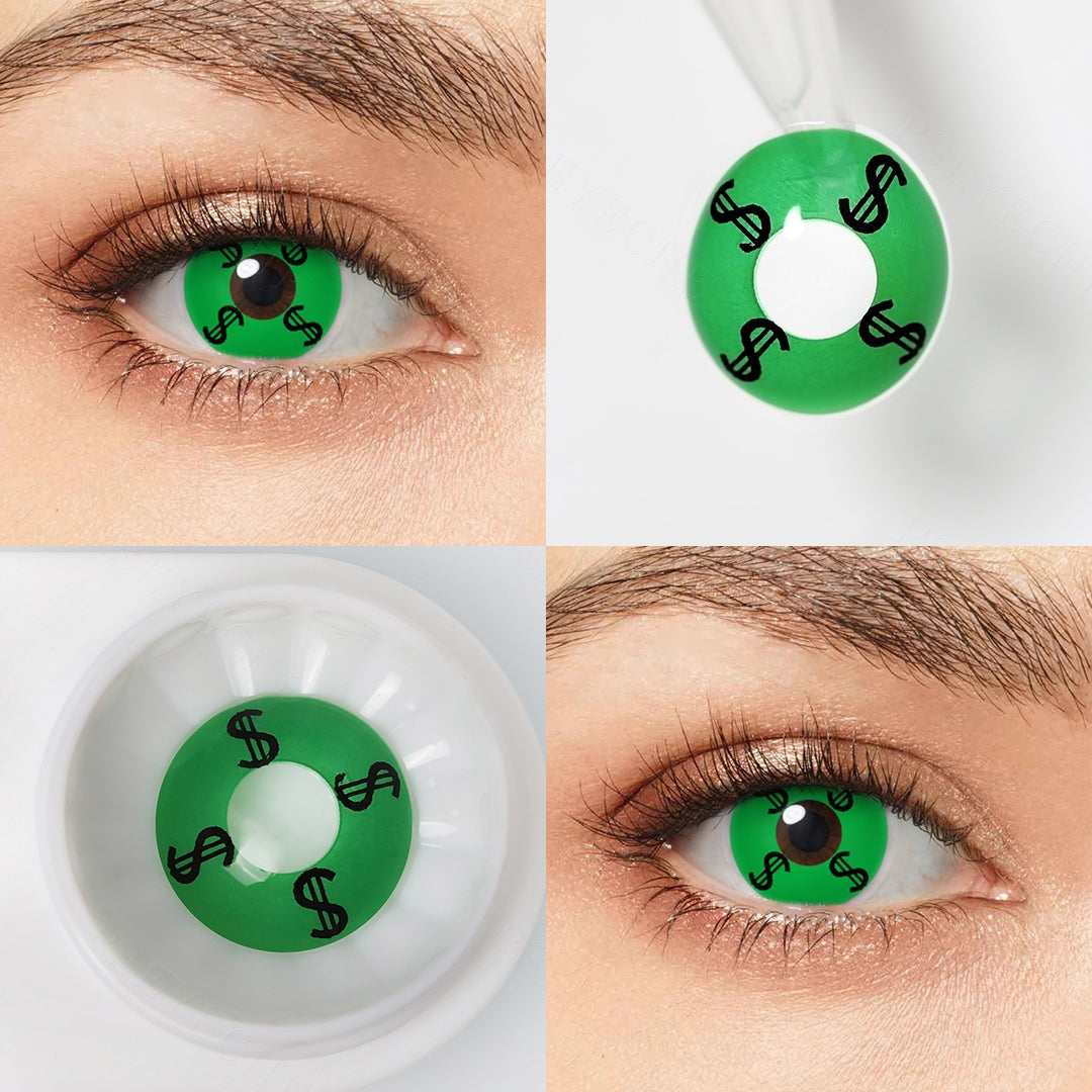 If you're looking for long-lasting green color contacts, then we recommend Green Dollar Contact Lenses. Green Dollar Sign Contact Lenses is an ingenious contact lens that combines a dollar sign with a crisp green color! Would wearing it be as attractive as money?