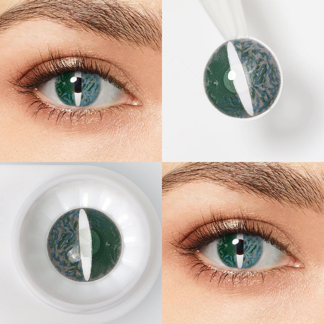 Amaze everyone that dares to look your way for this Green Lizard Eyes Contacts! The realistic texture and patterns create a lizard, monster even alien, making everyone creepy. Pick it for your amazing character!