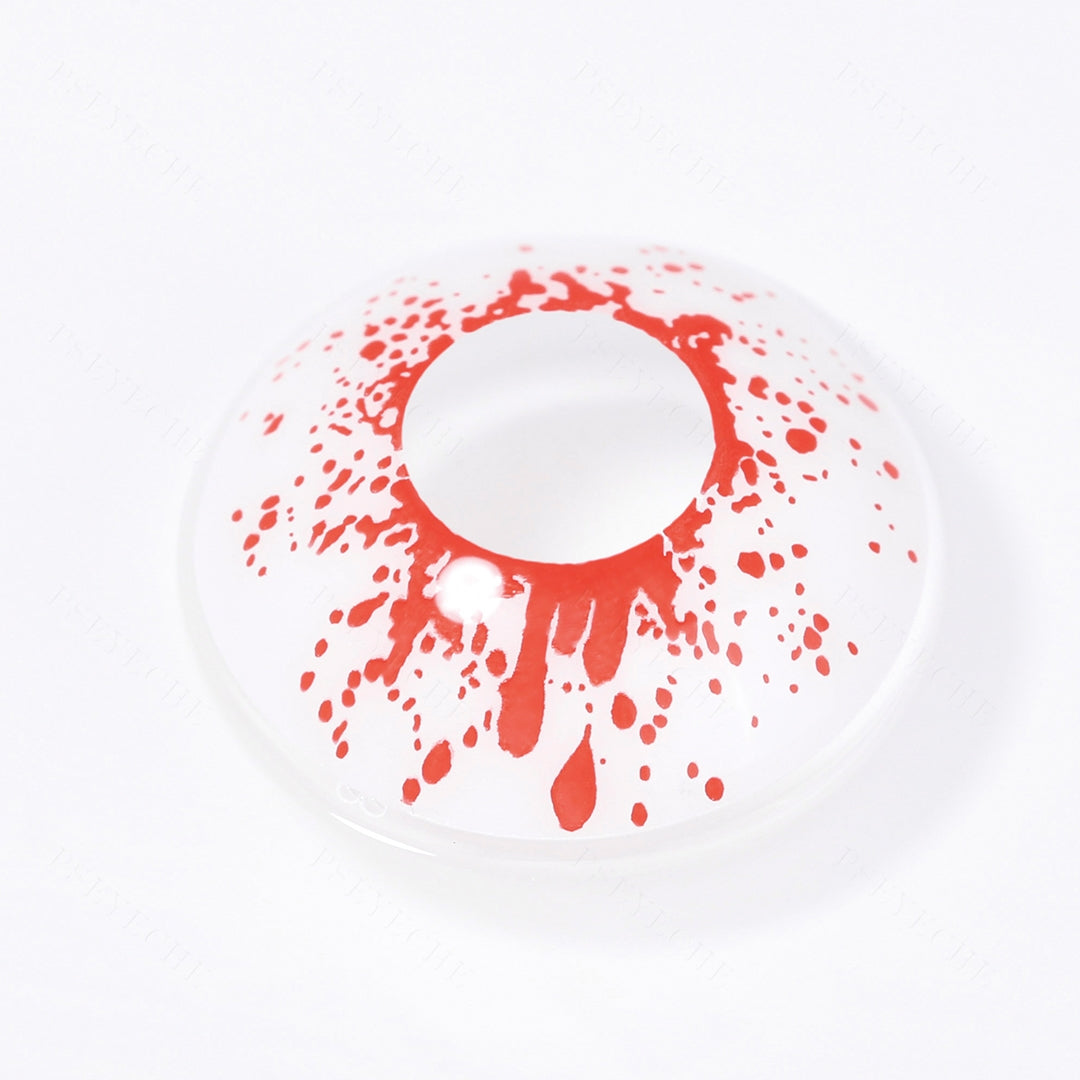 Wearing blood splat Halloween contacts, creates an illusion that some sort of gunshot wound has been inflicted. Blood splat around your pupil that looks rather gruesome. Definitely a highlight of role play and Halloween!