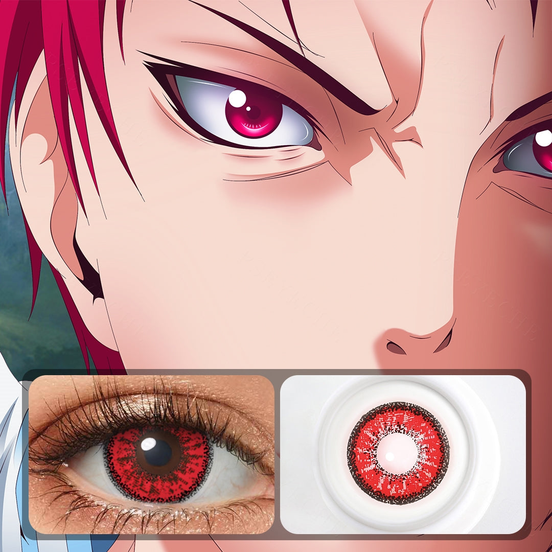 Be a bold and colorful member of the role play with dolly eye red contacts. These contacts do not completely cover the eyes while allowing the red lenses to fully display the blood expansion like madness with the sophisticated black limbal ring design.