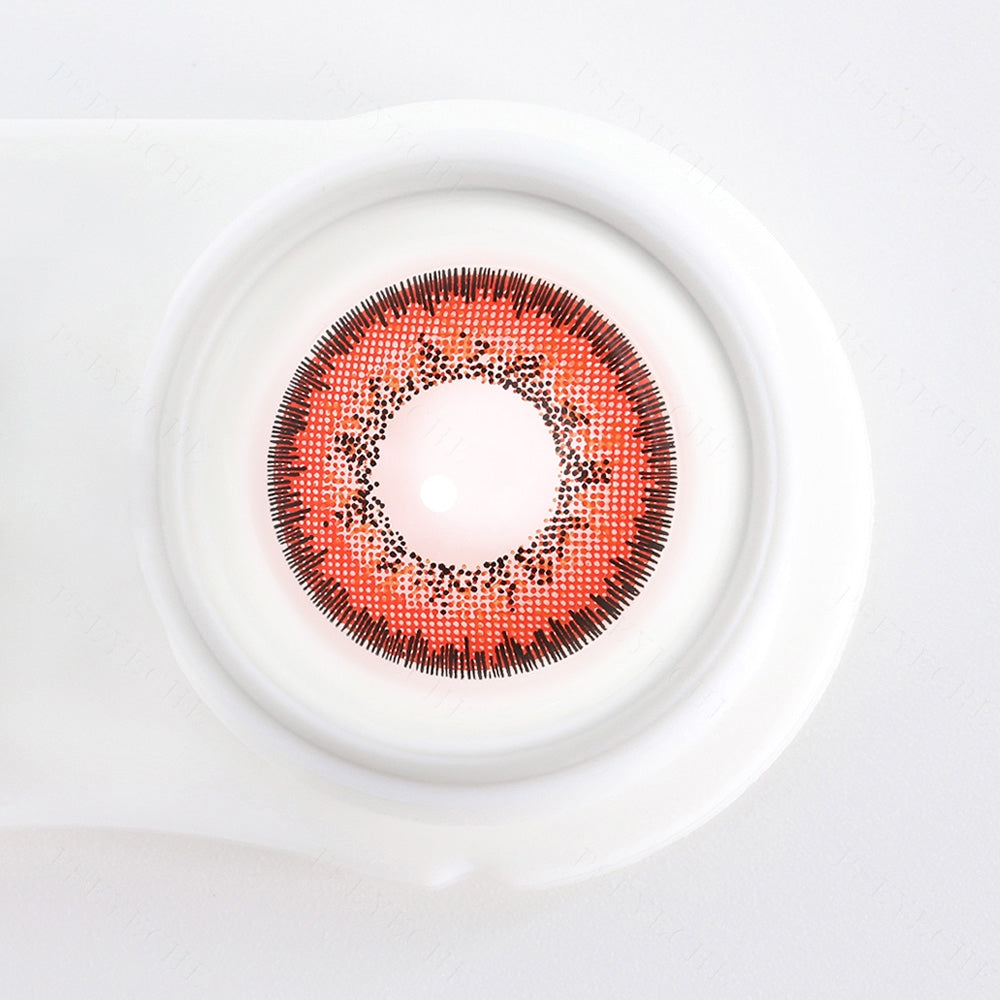 Invitate you to Listenig to the blazing sun story ---- envy red Halloween contacts. Stunning red lenses feature a special dotted design with hints of brown and black to make the red color stand out more. Can't wait for share this sunshine look to you at Halloween costume party.