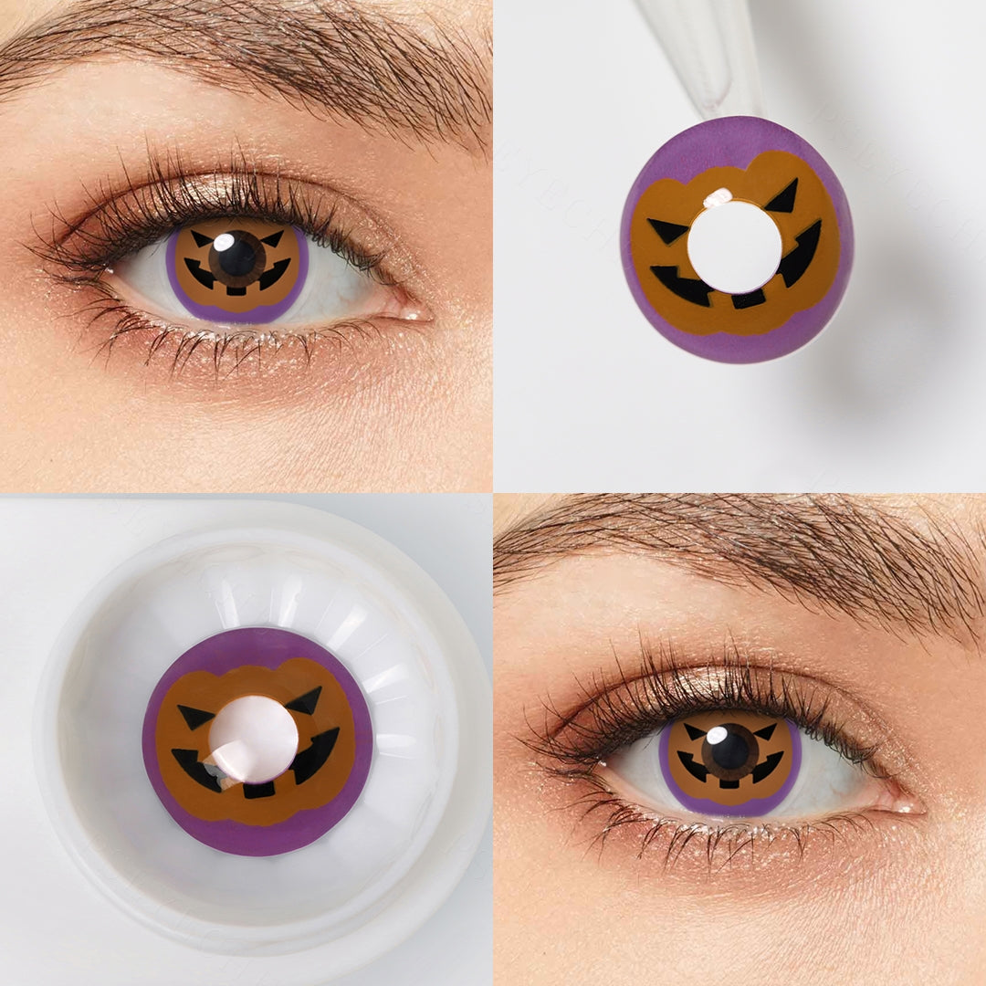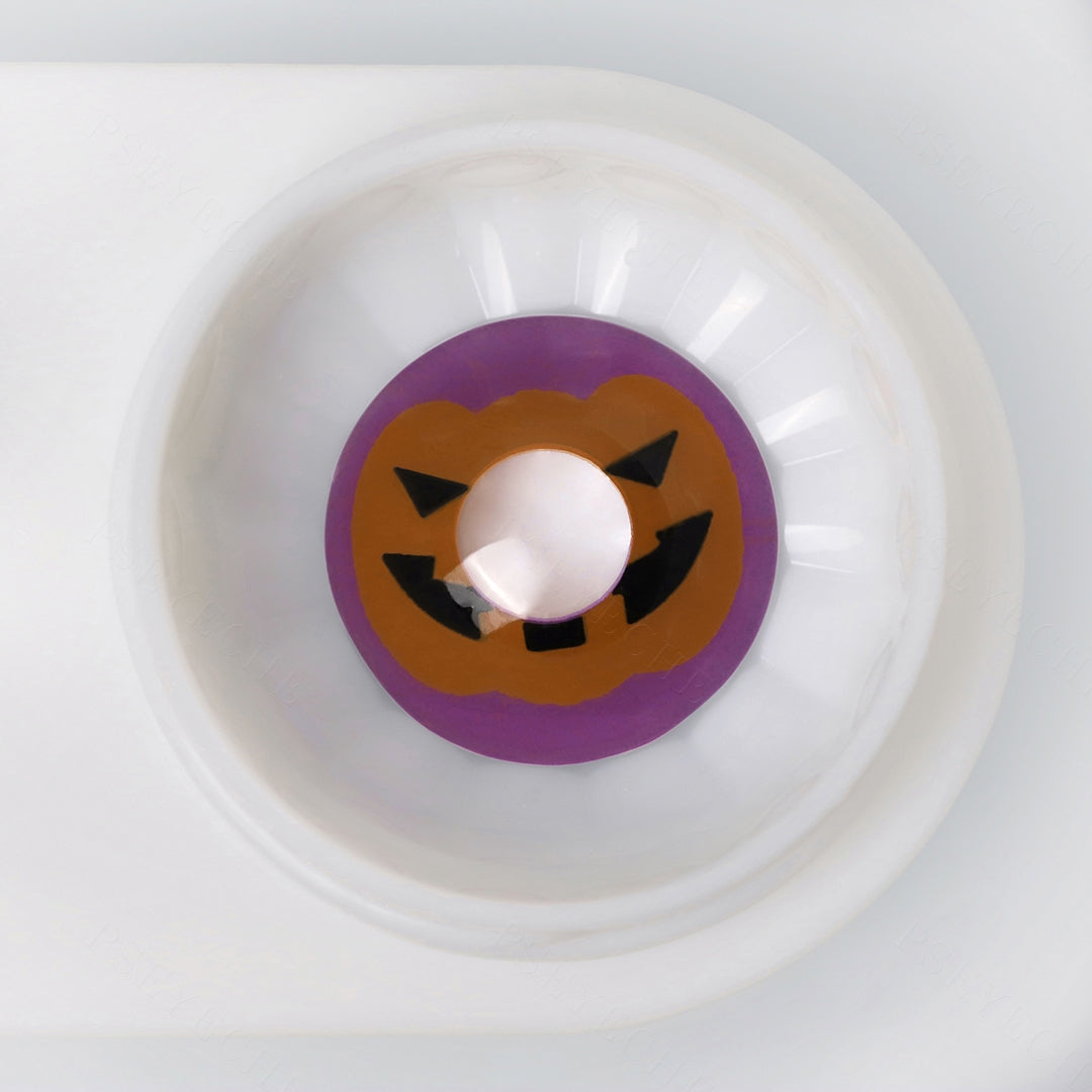Bold and shocking, our Pumpkin Contact Lenses are a must-have for high-impact scary style. These Halloween contacts completely cover your natural eye. Paired with a purple background, the evil pumpkin with a bad laugh will definitely make you stand out at the Halloween party.