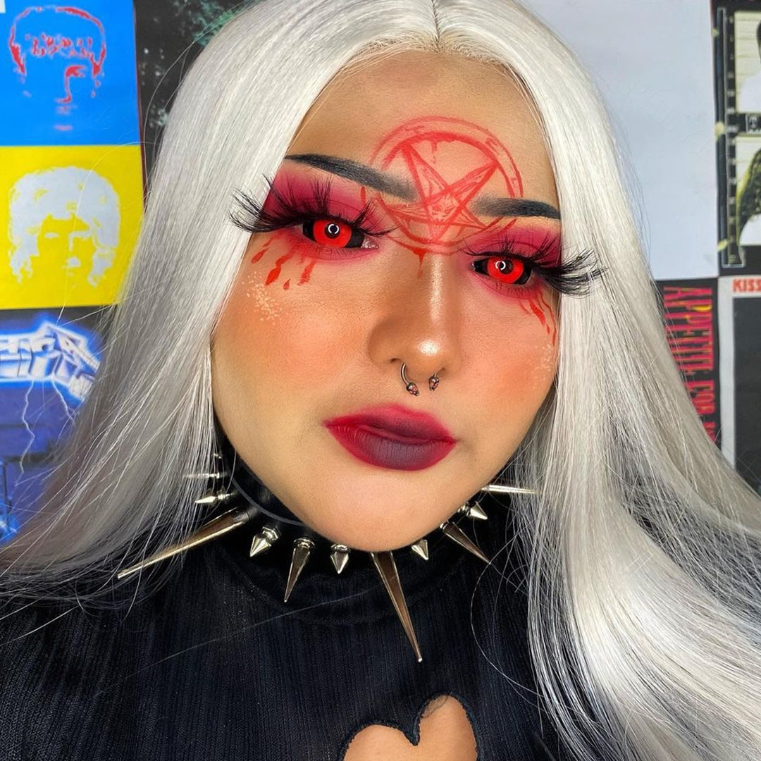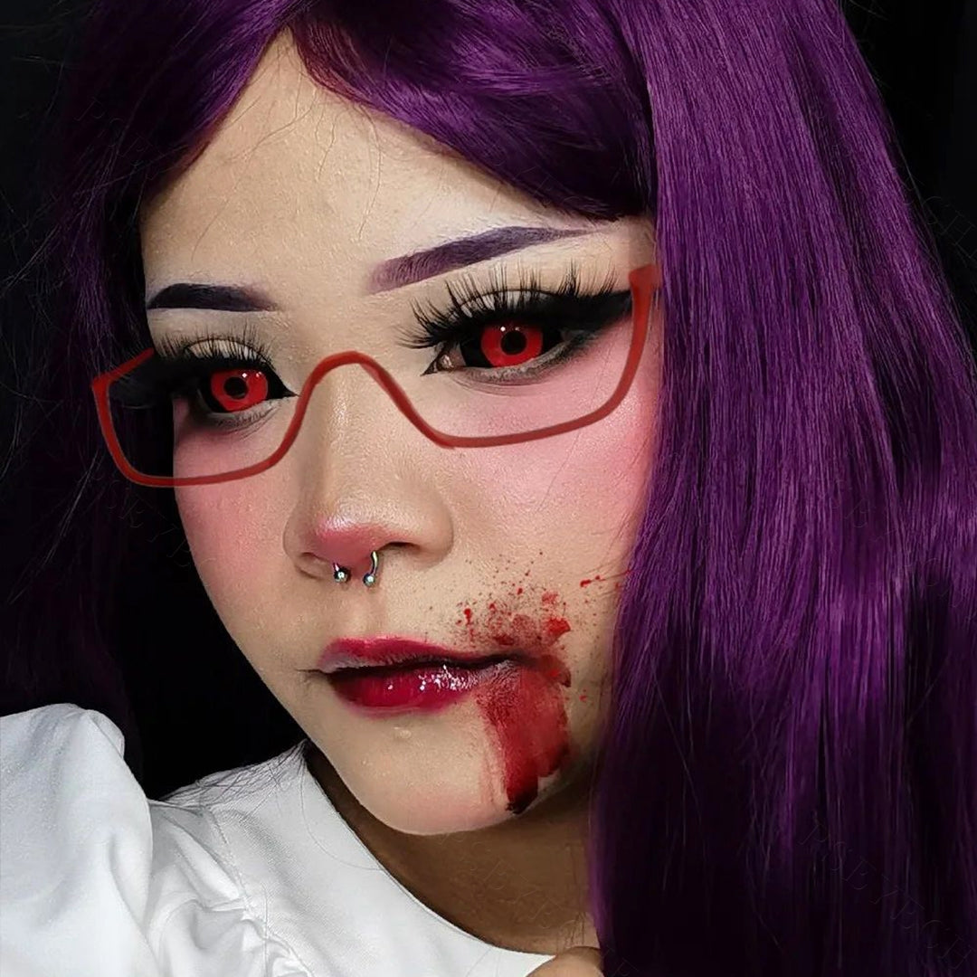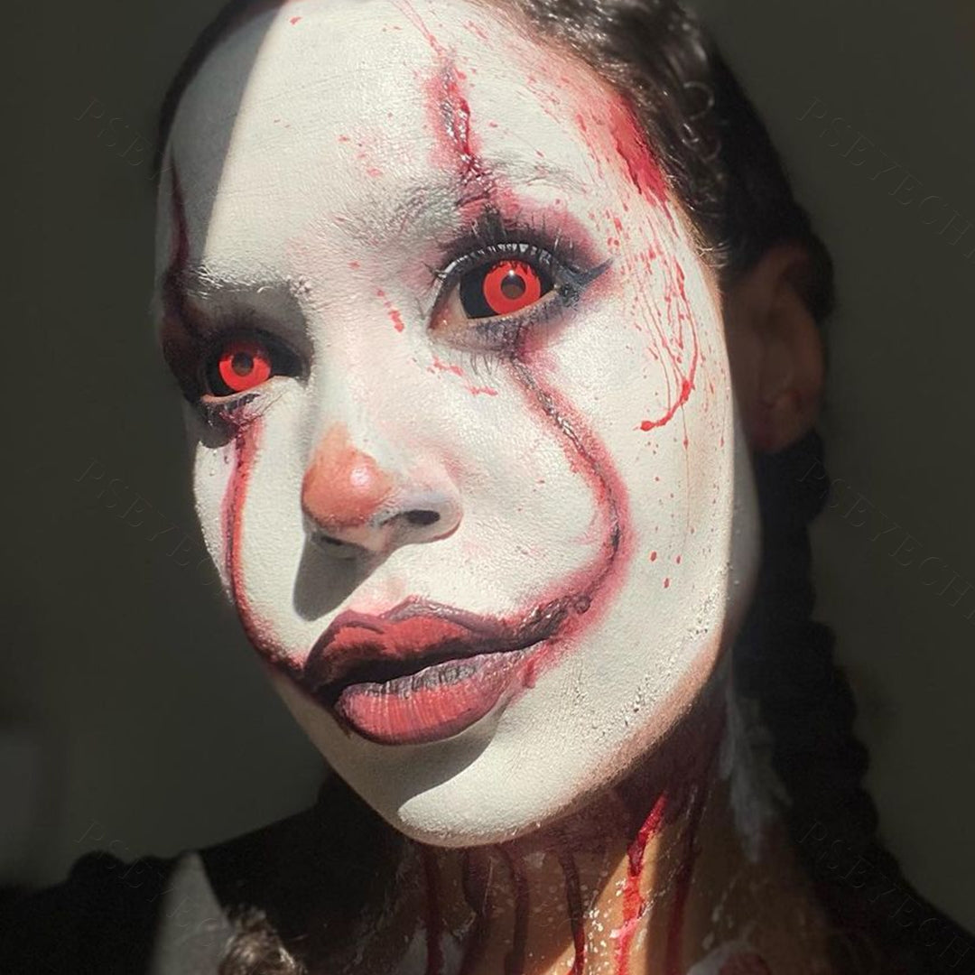 The deep red color always represents horror. Inspired by the Jigsaw Killer, Jigsaw sclera contact lenses cover your eyes totally with black and deep red, making them suitable for some great terrifying cosplay.