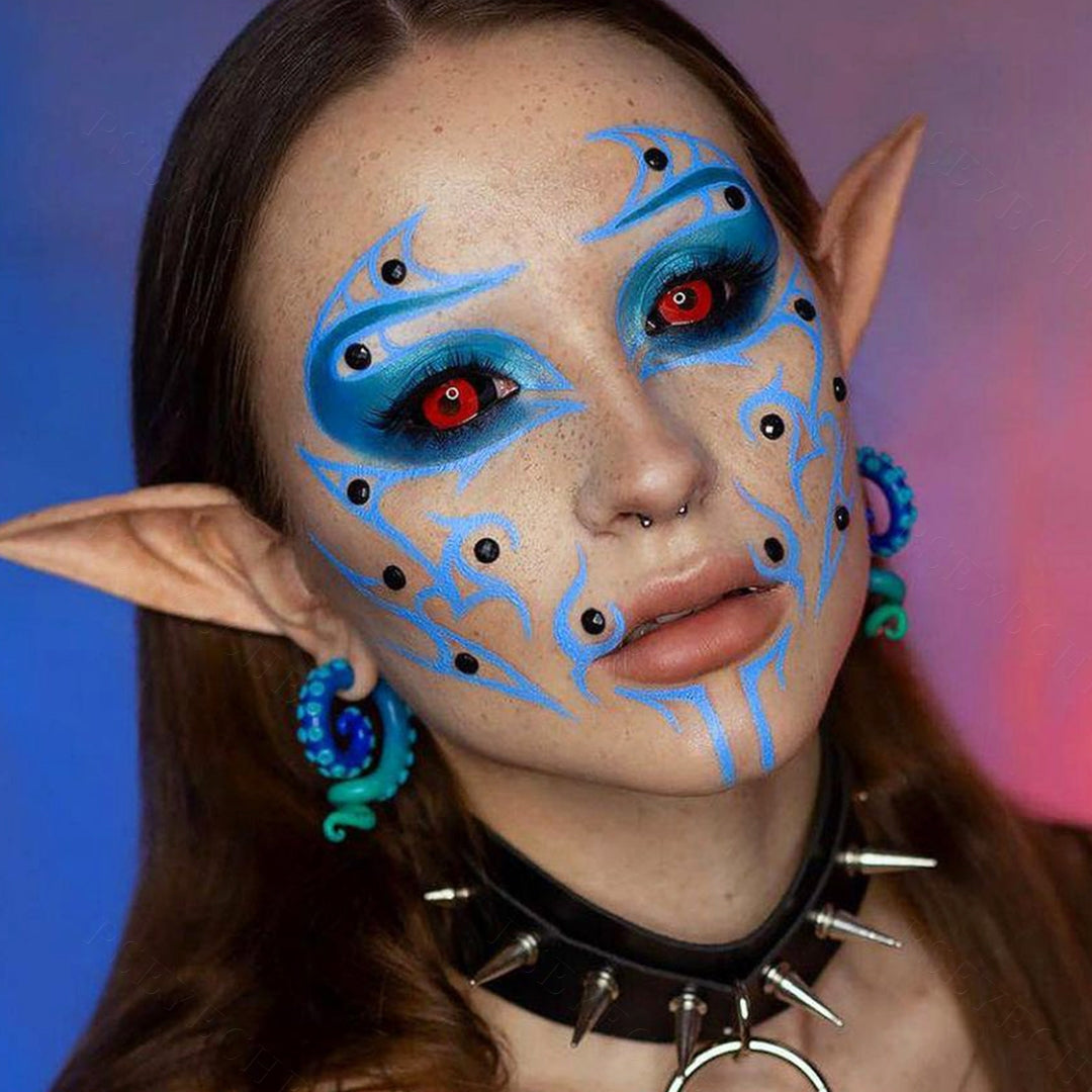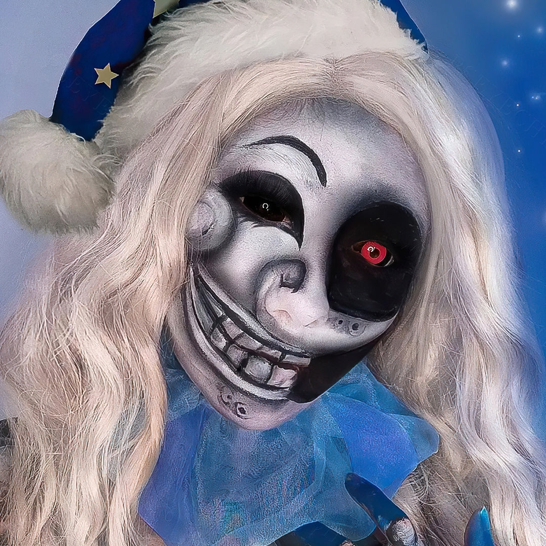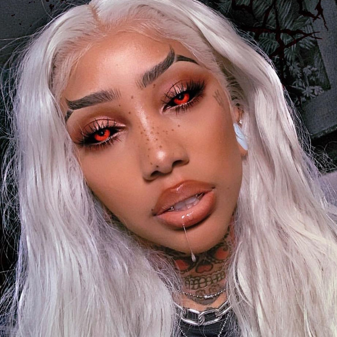 The deep red color always represents horror. Inspired by the Jigsaw Killer, Jigsaw sclera contact lenses cover your eyes totally with black and deep red, making them suitable for some great terrifying cosplay.