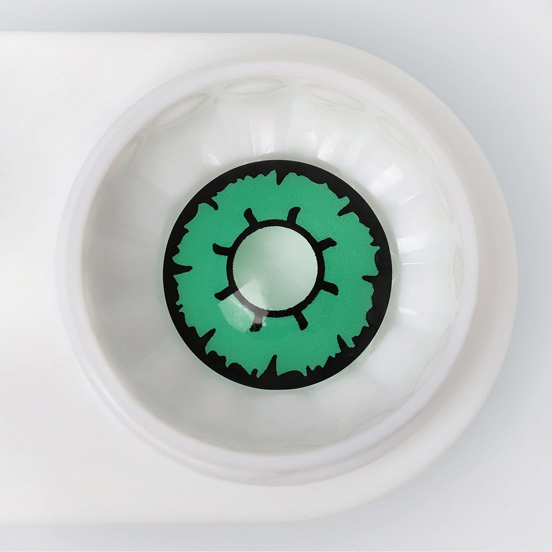 EOS Lace Green. These colored contacts can be used as Cosplay Contacts for the character Grell Sutcliffe.