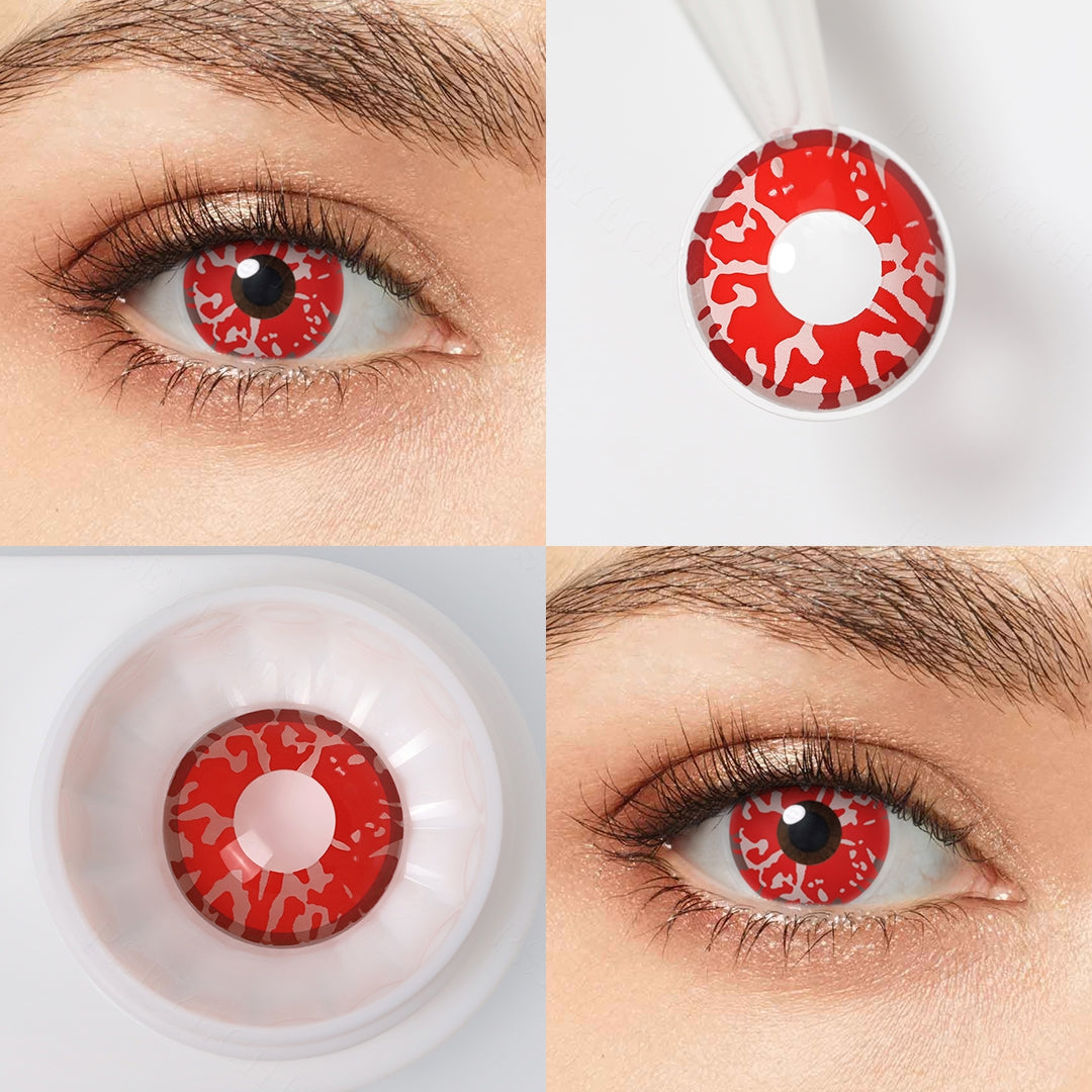 The Red Blood Splat Halloween Colored Contact Lenses in 30 Days. Spooky, freaky and all kinds of scary, these horror lenses are sure to make you stand out.