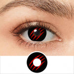 Red Claw Marks Contacts make a fun addition to your Halloween, costume parties, or just for fun. . They have a red claw mark on a black background and are especially appropriate for an evil demon.