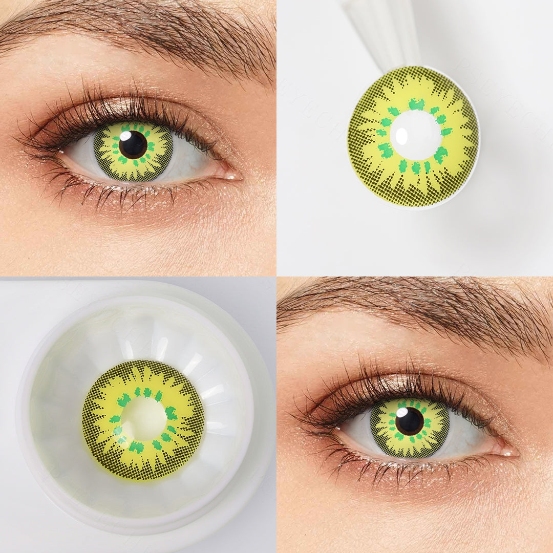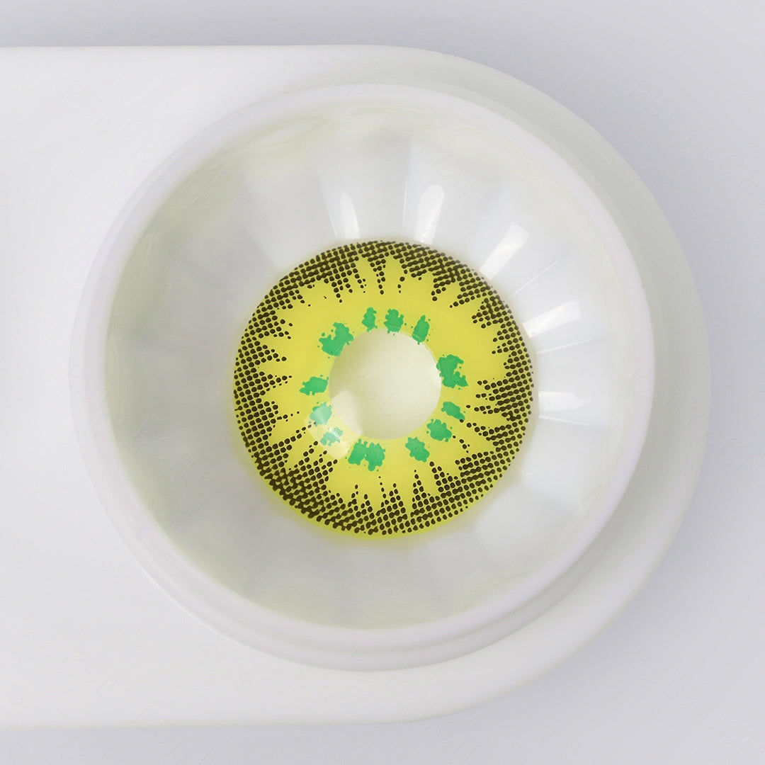 Sweet Candy Yellow Lens grabs one's attention with its foodful color and energetic design, The green accents surrounded the pupil hole adding glamour and spark to your eyes.