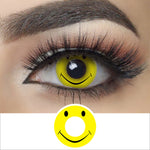- Who will reject smile? These Halloween contacts are designed with a big smile and a bright yellow background. This is so cute, showingΒ aΒ strikingΒ contrast to other contacts that are often seen on Halloween. Make different feeling onΒ this frightening Halloween eve.