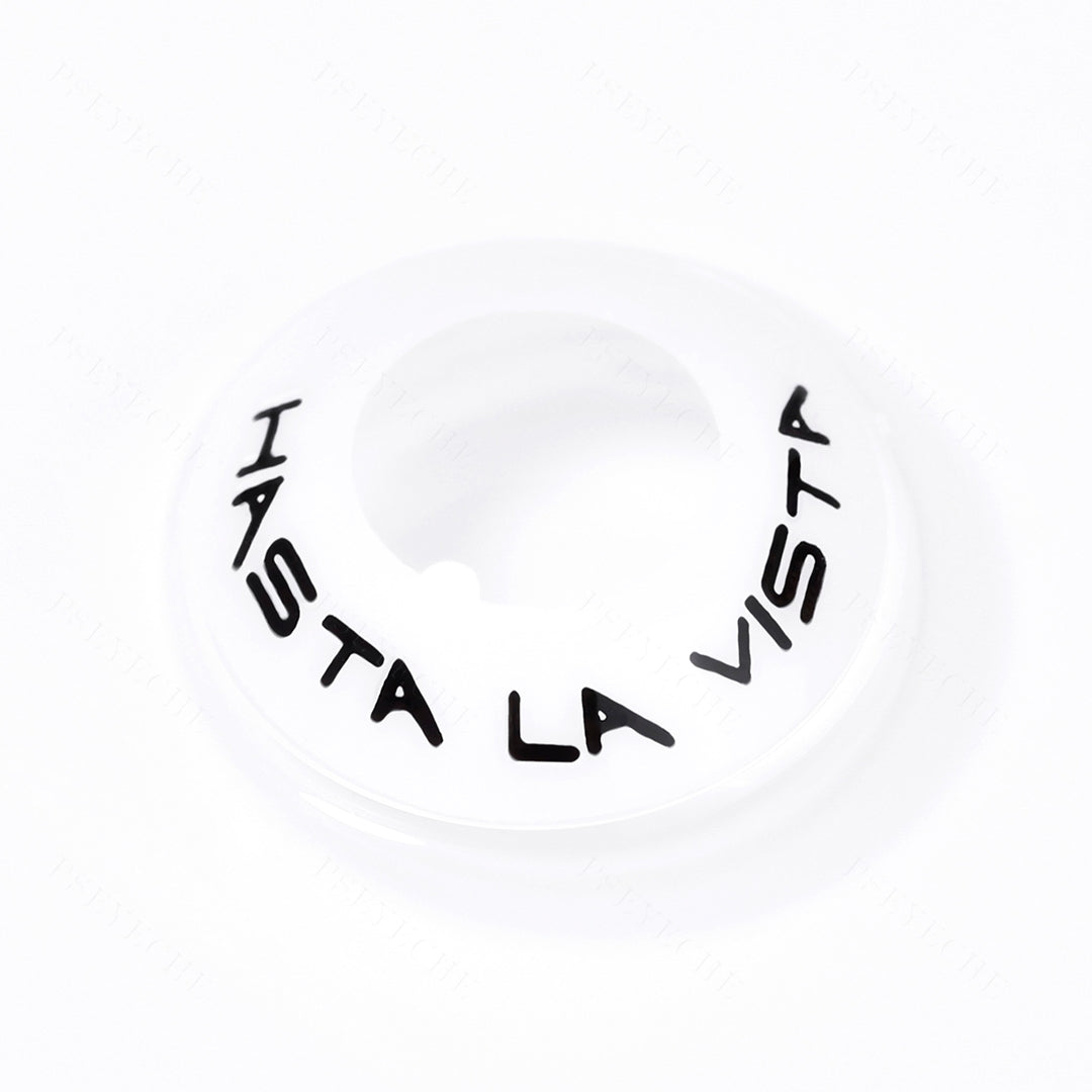 - If you want to cosplay as yourΒ favorite terminator, you'll love these lenses. Simply designed with white background and "HASTA LA VISTA", it gives you the best effects. What are you waiting for?Β Try it now!