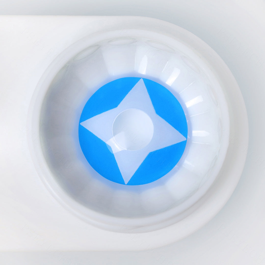 | Blow their minds with this Blue Four-pointed Star Lens. Featuring a bright sky-blue background, and a white 4-pointed star projecting out from the pupil. Make you the center of attention. |