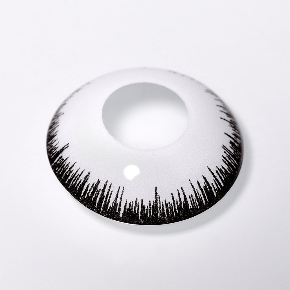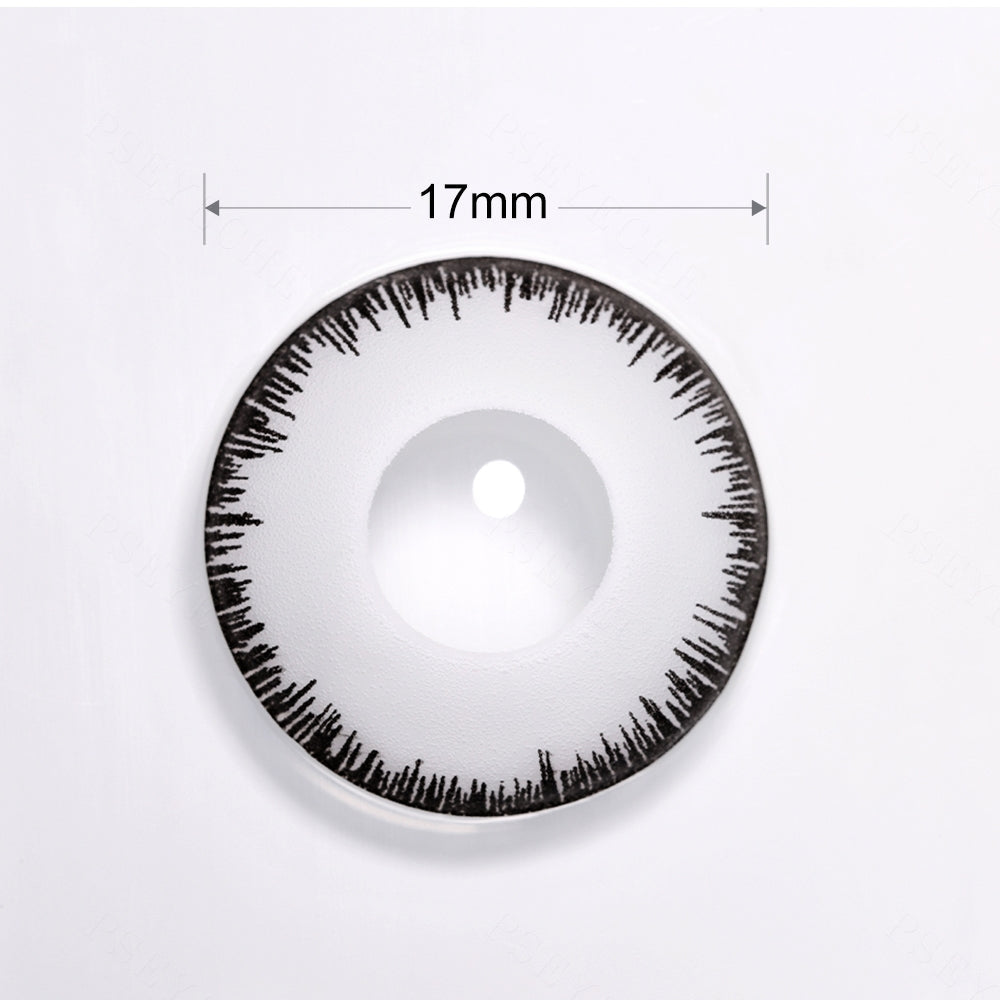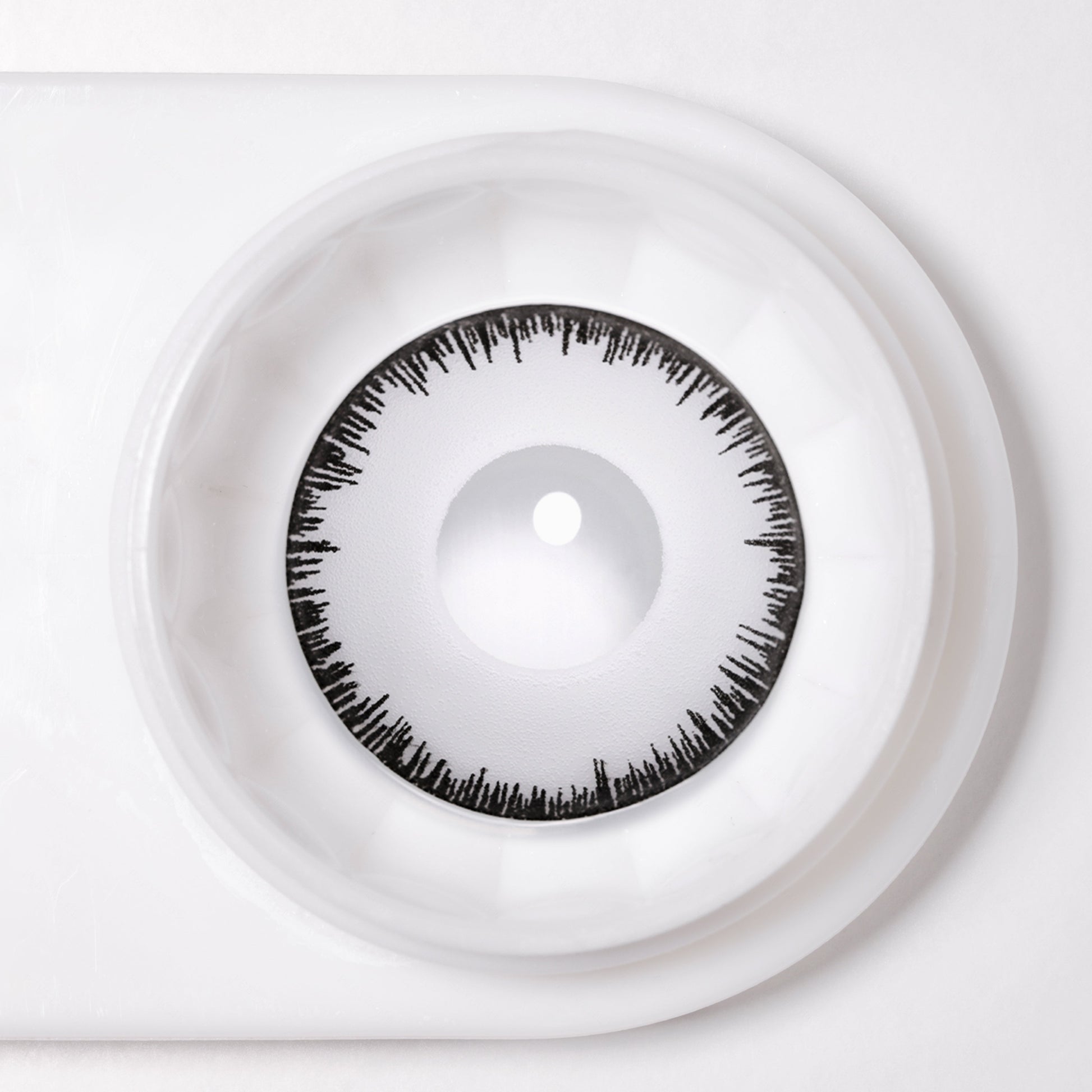 The White Werewolf Mini Sclera Contacts deliver your enthusiastic attitude with its brightΒ white color. The linear pattern spreads out from the center, making your eyes piercing and vibrant. Suitable for Halloween costumes, cosplay, or just for having some fun with your friends!