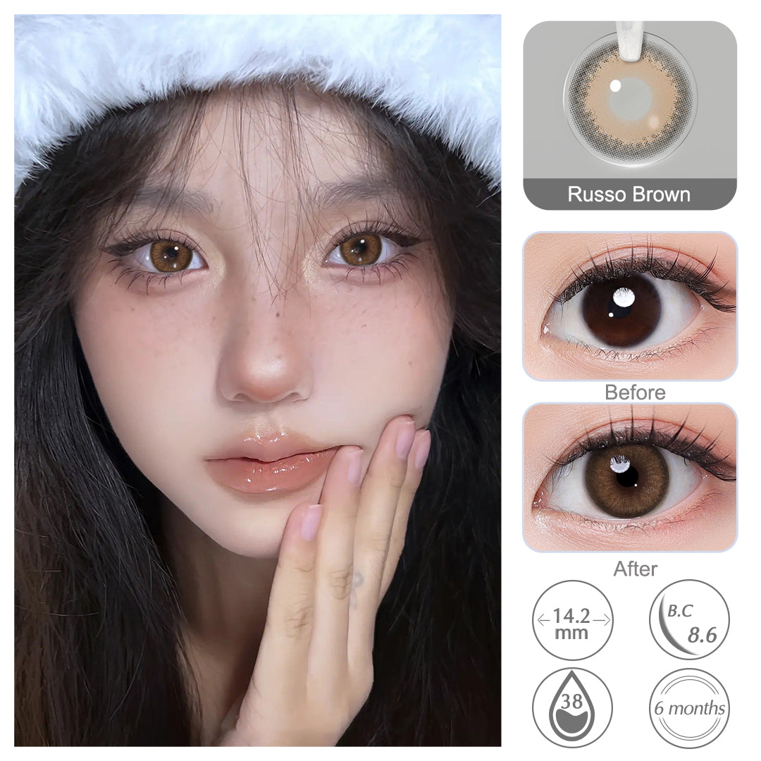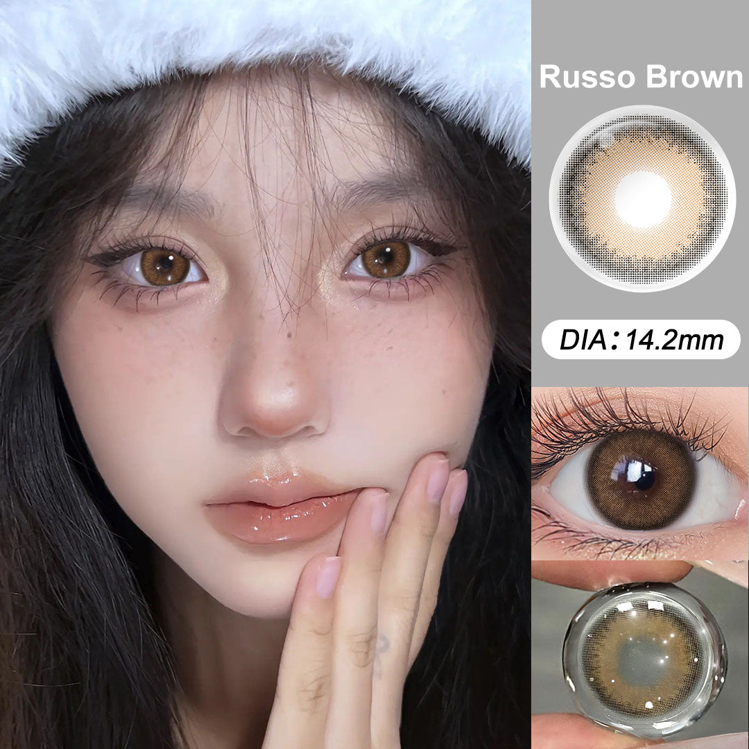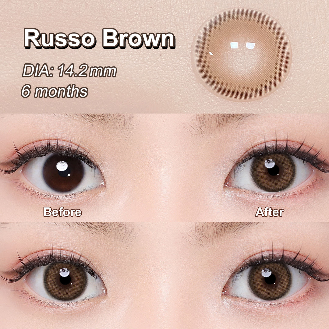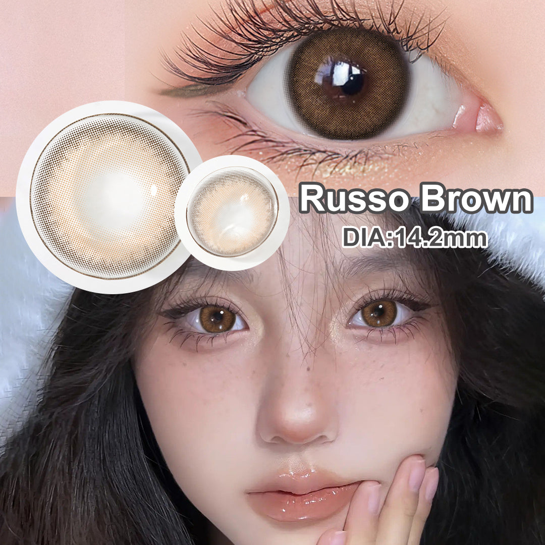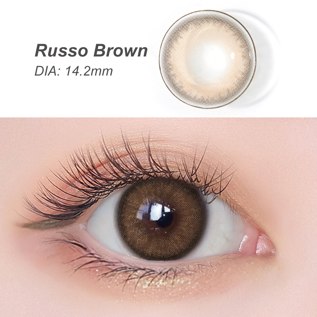 A medium opacity brown monochromatic shade that blends softly with the eyes for a natural and attractive look. RussoΒ Brown Colored contact lenses are the perfect choice for any occasion.