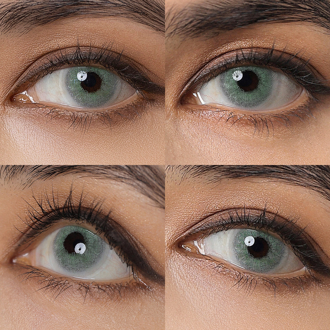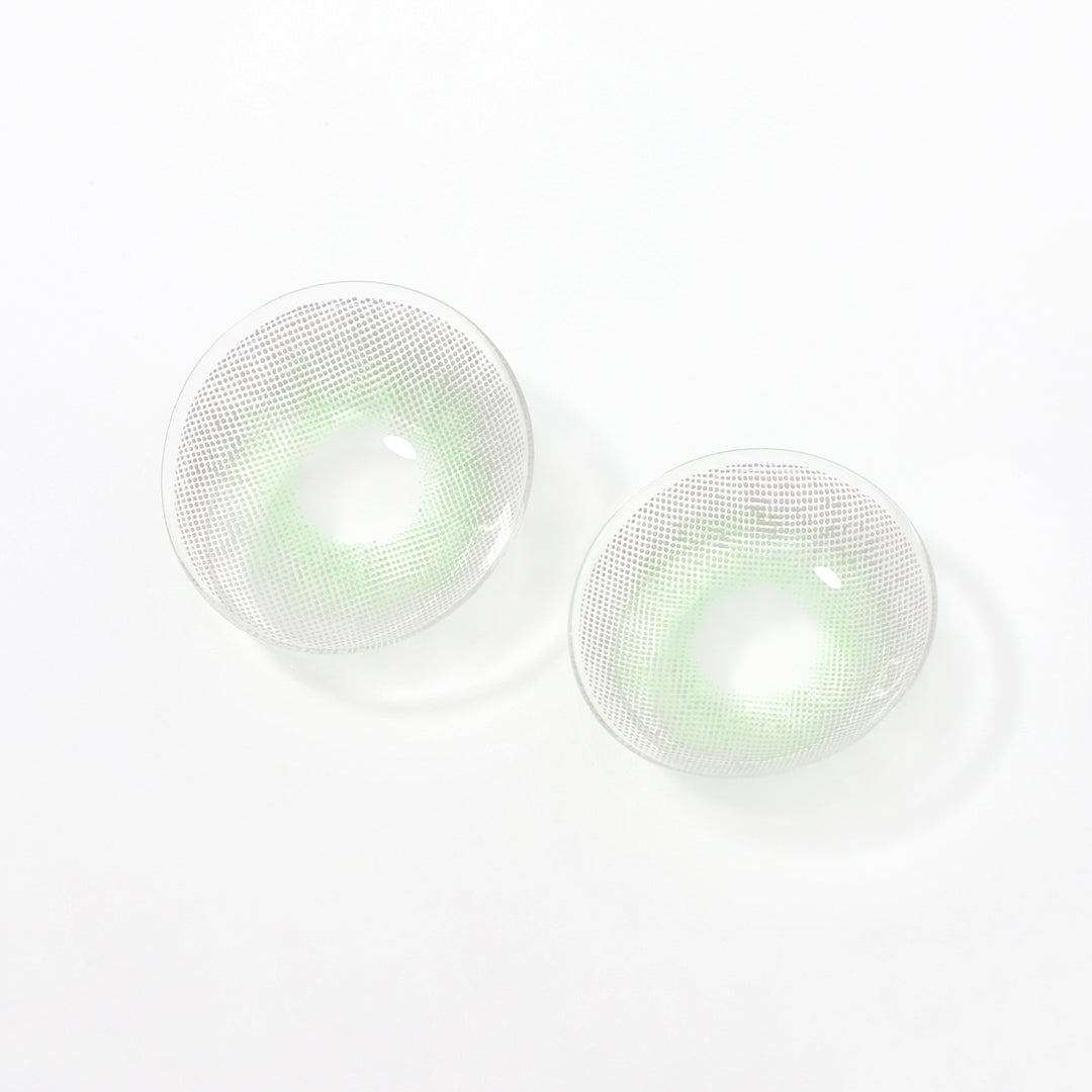 This Yukon Green colored contact lens is the season's new color blocking design, green and gray color scheme, jungle and rain, make your eyes more deep and more mysterious, meeting your pupils to form a tri-color patchwork. The rimless design of the lenses makes them seamlessly connect to your iris.
