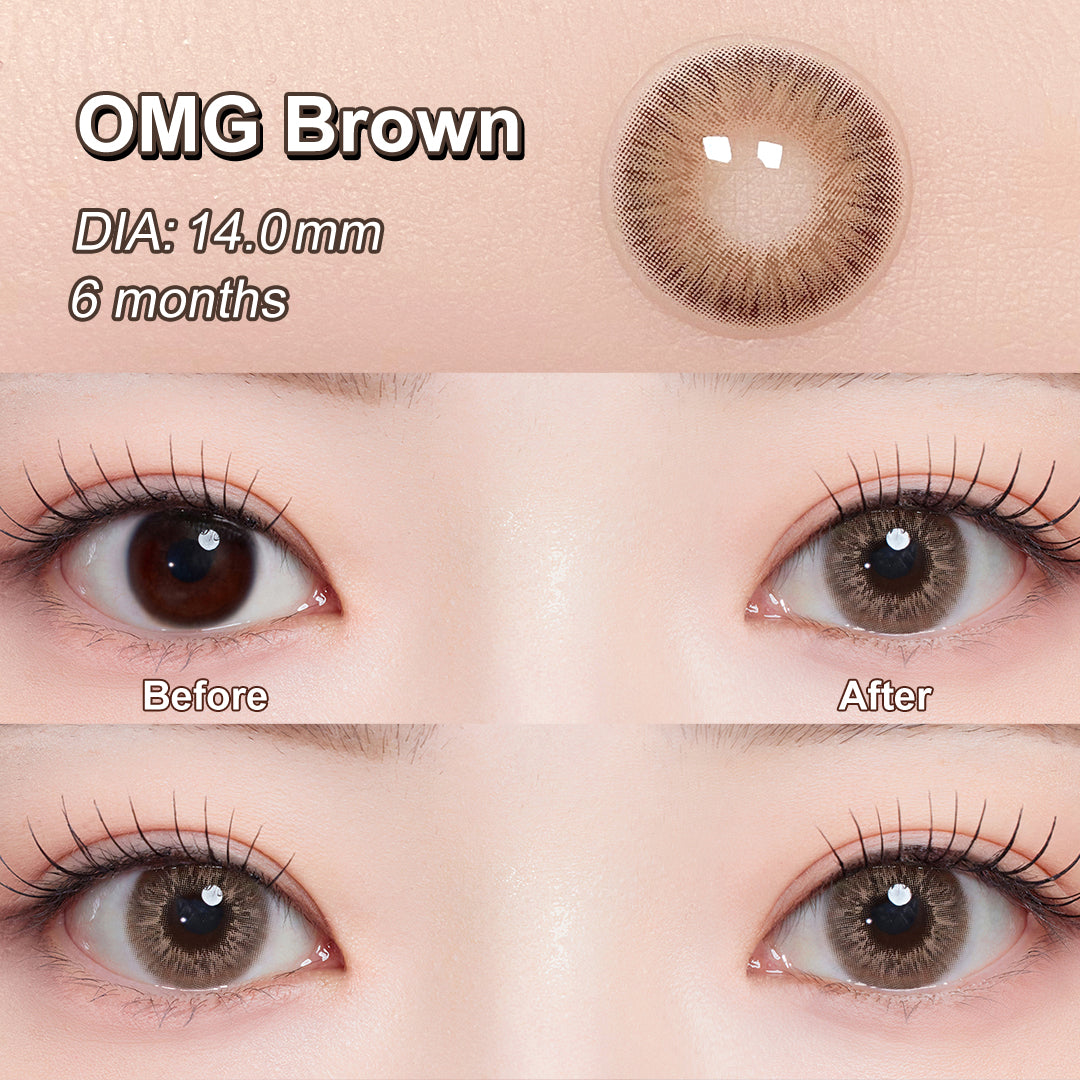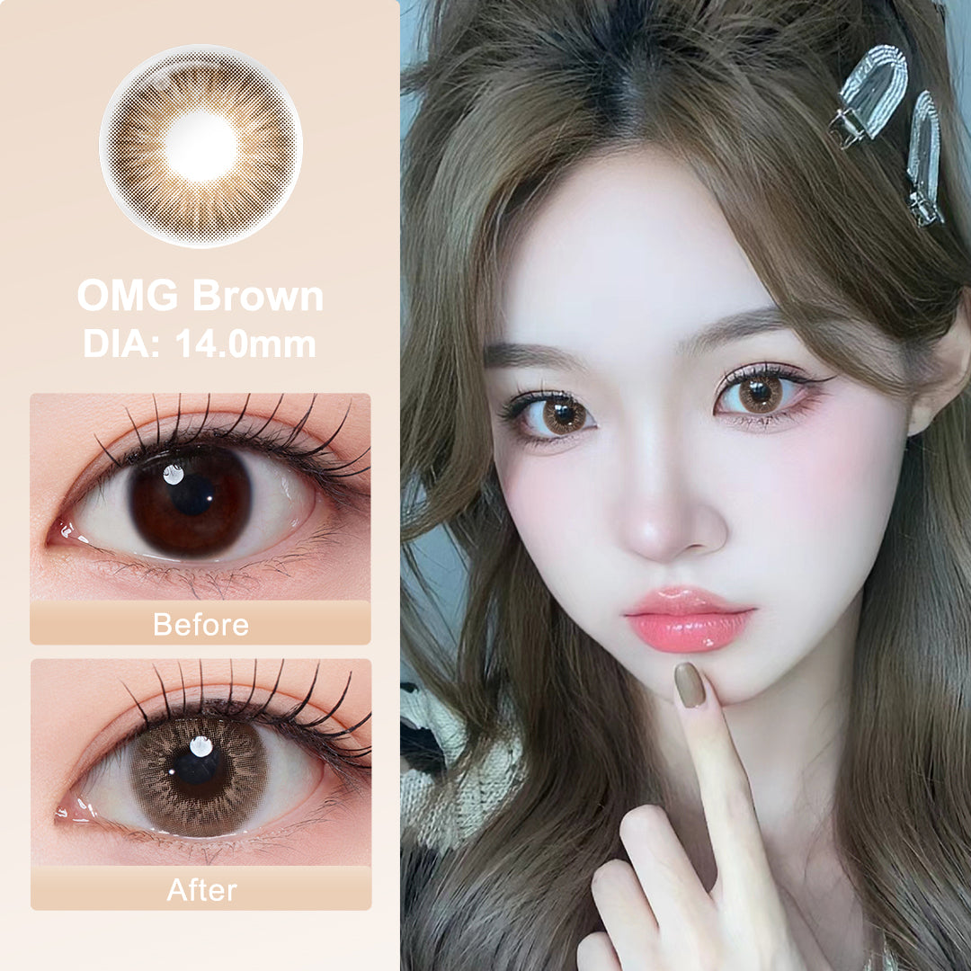 OMG brown, the perfect blend of sophistication and style. Designed to bring out the warmth in your eyes, these lenses feature a rich, warm brown hue that adds depth and allure to your gaze. Whether you're looking for a subtle change or a more dramatic transformation.