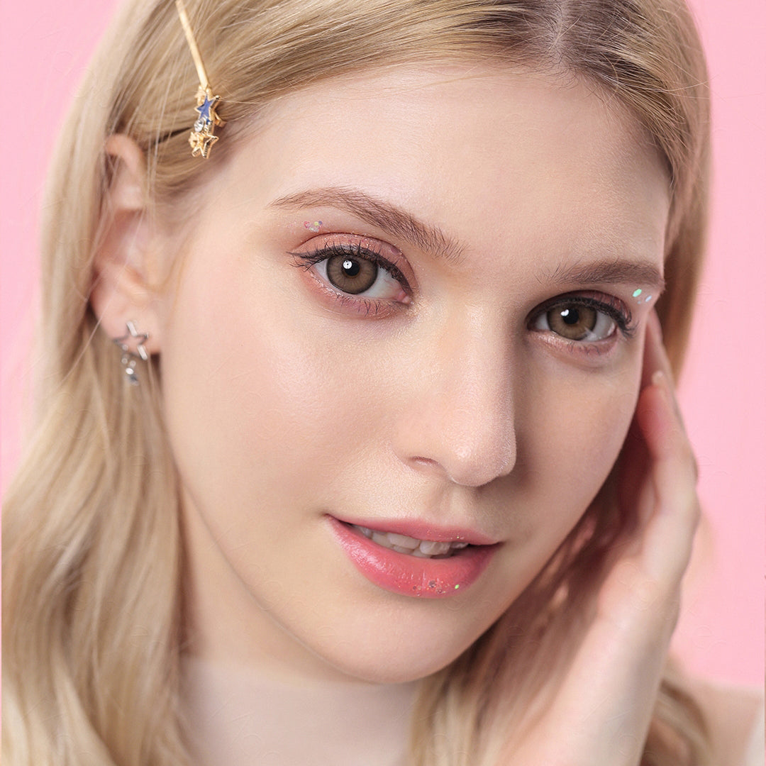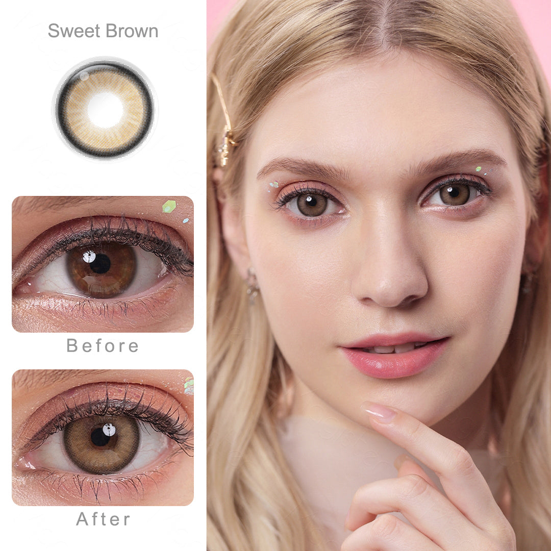 Catch people's eyes with your stunning Sweet Brown eyes! One of the rarest colorways, Sweet Brown contact lenses eschew an artificial look in favor of olive and hazel tones to create natural-looking green eyes.
